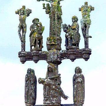 L'enclos paroissial, patrimoine religieux de la commune de Plougonven dans le Finistère, classé 2 écus.