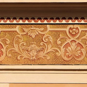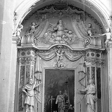Au plus près, l'architecture baroque se caractérise par l'opulence avec une ornementation à outrance, où se multiplient l'usage des faux marbres polychromes, du stuc, des sculptures d'anges dorés, des volutes, spirales, rocaille, cartouches,.... Les fresques du plafond ouvrent l'espace avec une impression de ciel ouvert, en trompe-l'oeil.