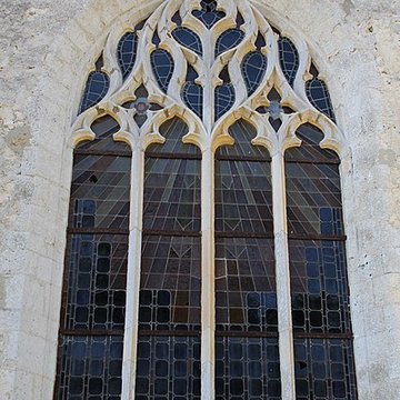• Le gothique rayonnant, de 1230 à 1380, pousse à l'extrême la nécessité d'augmenter au maximum les surfaces vitrées par l'emploi d'une armature de fer, dite « pierre armée », et avec des remplages d'une grande finesse qui ne font pas obstacle à la lumière. Le meilleur exemple en est la Sainte-Chapelle de Paris