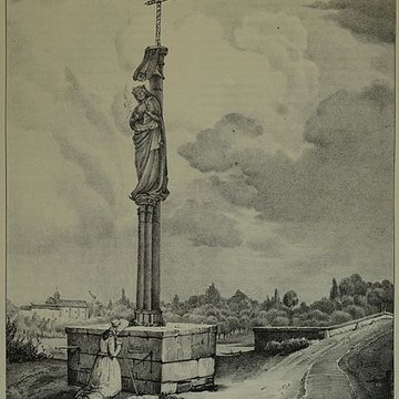 La croix de la fontaine Saint-Georges, patrimoine religieux de la commune d'Etourvy dans l'Aube, classé 1 écu.
