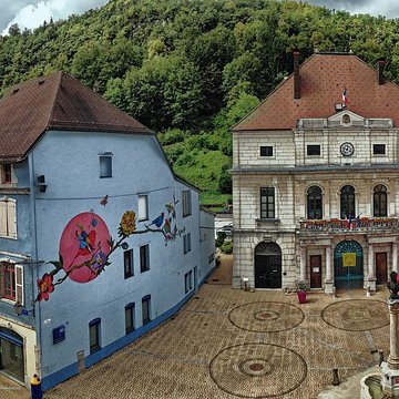 La fontaine de l'hôtel de ville, monument de la commune de Moirans-en-Montagne dans le Jura, classé 1 écu.