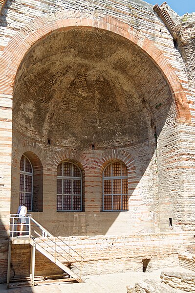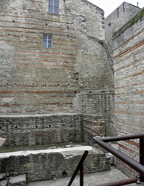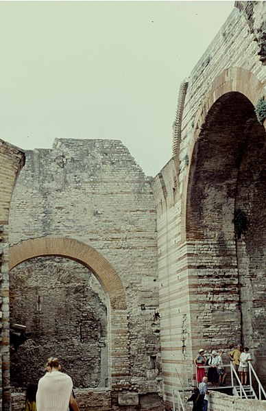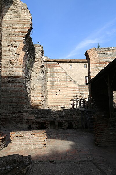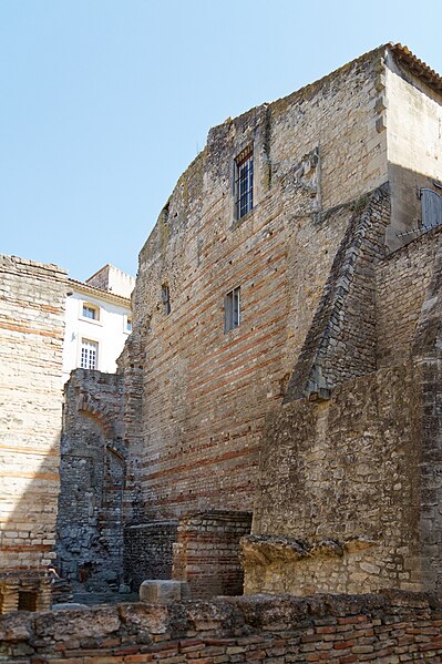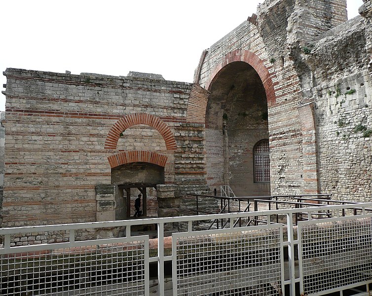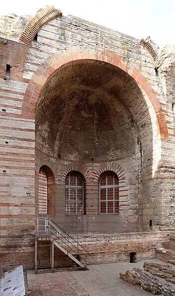 Les thermes de Constantin, également appelés thermes du Nord, sont des bains romains du IVe siècle situés à Arles, en bordure du Rhône. Ils ont été construits au début du IVe siècle, à l'époque où l'empereur Constantin résidait à Arelate. Au Moyen Âge, ces vestiges furent connus sous le nom de « palais de la Trouille » et pris à tort pour les ruines d'un palais impérial. Les vestiges ont été classés au titre des monuments historiques par la liste de 1840 ; le mur romain et les caves attenantes ont été classés en 1922. La ville d'Arles a racheté le monument, qui a été rénové entre 1980 et 1995. Parmi les thermes romains de France, ceux du Nord figurent parmi les mieux conservés, aux côtés des thermes de Chassenon et de Cluny ; ils ont été partiellement dégagés à partir du XIXe siècle. Les vestiges visibles correspondent principalement au caldarium, équipé d'un système de planchers chauffants (hypocauste) et comportant trois bassins (solia) : deux bassins rectangulaires et un bassin en abside semi‑circulaire percé de trois fenêtres et coiffé d'une voûte en cul‑de‑four. Le caldarium communique avec le laconicum, ou étuve sèche, et le tepidarium, ou bain tiède, qui se termine à l'ouest par une abside semi‑circulaire. D'autres parties des thermes, situées plus au sud, n'ont pas été fouillées. Parmi les éléments architecturaux remarquables se trouvent la voûte du caldarium, les pilettes de l'hypocauste, une vis d'escalier et la structure des murs.