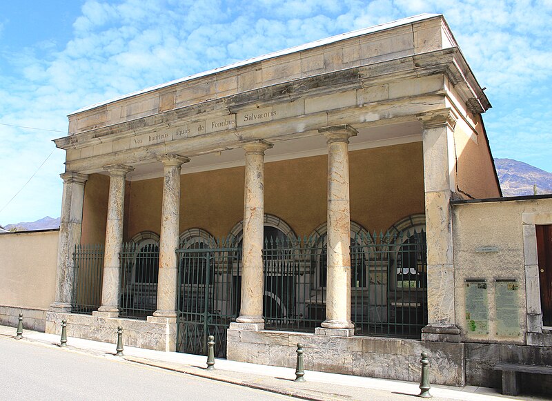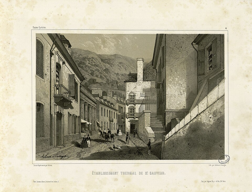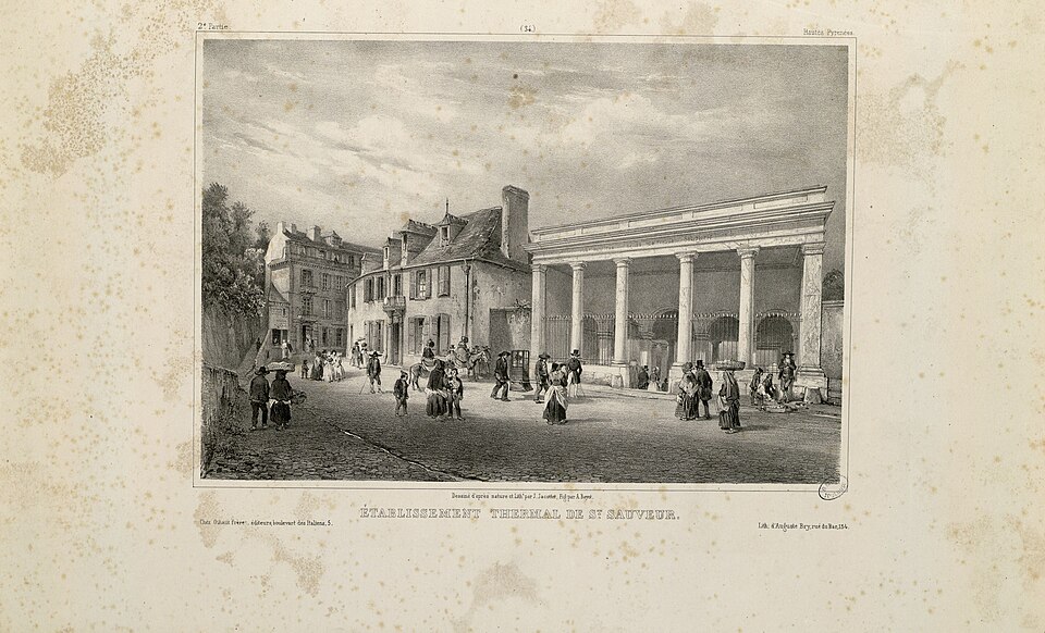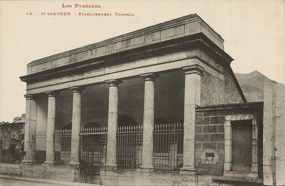 Les thermes de Saint-Sauveur prennent leur origine au XVIe siècle et s'appuient sur une source fréquentée au moins depuis le XVe siècle. En 1572, l'évêque de Tarbes fit édifier un petit bâtiment précaire près de la source, dont les eaux furent officiellement reconnues et déclarées "sources d'État" en 1730. Vers 1750, l'aménagement se limitait à un bassin couvert par une voûte partiellement creusée dans le roc. La réputation du site s'affermit dans la seconde moitié du XVIIIe siècle grâce à l'abbé Bézégua, qui se soigna de troubles digestifs et mit en évidence l'efficacité des eaux pour les affections féminines ; il acquit une maison, capta un filet d'eau et exploita trois baignoires. L'établissement thermal résulte de la réunion des bains de Bézégua — dont l'exploitation commerciale fut ensuite interdite — et des bains publics voisins, et certains documents officiels évoquent encore les thermes Bézégua au début du XIXe siècle. Avant la Révolution, le site comprenait cinq à sept maisons de bains alimentées par une seule source sulfureuse, totalisant treize baignoires. En 1808, l'établissement connut des améliorations significatives avec des baignoires en marbre, des cabinets "commodes et bien fermés" et l'installation d'une douche. Après les visites de la duchesse d'Angoulême en 1823 et de la duchesse de Berry en 1828, la commune fit reconstruire un établissement de quatorze baignoires selon les plans confiés à l'architecte départemental Pierre Artigala, travaux réalisés entre 1829 et 1832 pour un coût estimé à 42 000 francs. Les projets d'aménagement furent soumis au Conseil des Bâtiments civils entre 1812 et 1835, qui adopta notamment le 6 mars 1835 un projet d'agrandissement estimé à 38 000 francs, mais avec réserve. Lors d'une visite en 1853, Edouard Filhol, accompagné de l'ingénieur Jules François, du médecin inspecteur Fabas et de l'architecte Edmond Chambert, jugea l'établissement, alors pourvu de seize cabines, de deux douches et d'une buvette, "remarquable par son élégance et sa simplicité". À l'occasion du séjour de Napoléon III et de l'impératrice Eugénie en 1859, les thermes furent à nouveau agrandis d'après les plans de l'architecte J. Normand et de l'ingénieur Jules François, lui-même auteur de plusieurs inspections et rapports entre 1845 et 1864. Sur le plan architectural, l'ensemble se compose d'une entrée en portique à colonnes, d'un grand hall central bordé de portiques et de deux étages de cabines de bains en marbre de différentes couleurs, desservis par une petite galerie voûtée d'arêtes percée d'un oculus. La composition essentielle de l'édifice n'a guère été modifiée depuis l'époque de Napoléon III, malgré des remaniements et modernisations ultérieurs, notamment ceux entrepris par l'architecte Macary en 1930. Les thermes furent inscrits au titre des Monuments historiques en 1975. Après une rénovation importante en 1995, une extension intégrée aux bâtiments contigus, réalisée par l'architecte Michel Authié en 2004 et dénommée Luzéa, atteste de l'adaptation de l'établissement au thermoludisme du début du XXIe siècle. La modernisation s'est poursuivie avec l'installation de nouveaux équipements en 2009, dont une machine de thalaxion, distinction qui valut aux thermes le Prix de l'Innovation en 2010.