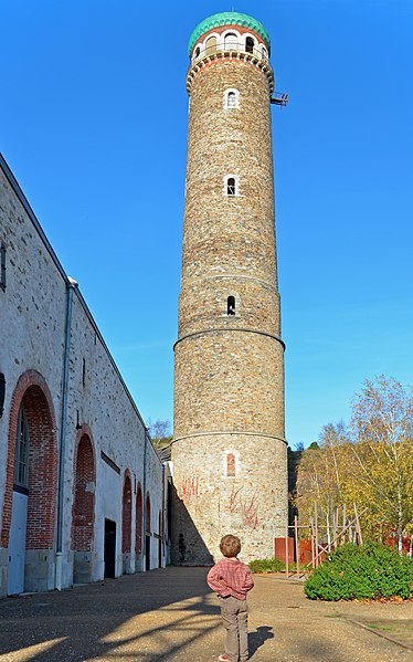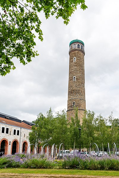 La tour à plomb de Couëron (Loire-Atlantique) est une grande tour industrielle du XIXe siècle, classée au titre des monuments historiques le 11 février 1993. Construite entre 1875 et 1878, avec un achèvement signalé en juillet 1878, elle faisait partie d'une usine établie en 1861 au bord de la Loire pour traiter le minerai de plomb et laminer le laiton et le cuivre. Sa hauteur est indiquée entre environ 60 et 69 mètres et son diamètre est de 11,30 mètres. Cette tour figurait parmi les installations destinées à produire industriellement la grenaille de plomb utilisée pour les cartouches de chasse. Le procédé consistait à faire fondre le plomb, auquel on ajoutait une proportion d'arsenic et d'antimoine (environ 8 % en général), puis à le laisser s'écouler du sommet à travers une grille calibrée ; pendant la chute les gouttes prenaient une forme sphérique et retombaient dans un bac d'eau pour se refroidir, avant d'être triées et conditionnées. Le matériel protégé sur le site comprend le monte-charge, des cuves de réception, un four, deux cuves de fusion et divers outils. La tour fut reprise vers 1935 par l'usine de plomb La Vieille, puis par la Société des mines et fonderie de Pontgibaud, ensuite par la société Tréfimétaux, avant d'être rachetée par la commune. L'usine a cessé son activité en décembre 1988 dans le cadre de Tréfimétaux et les bâtiments appartiennent désormais à la ville de Couëron. La tour à plomb de Couëron reste l'un des derniers vestiges industriels du XIXe siècle dans la région de Nantes.