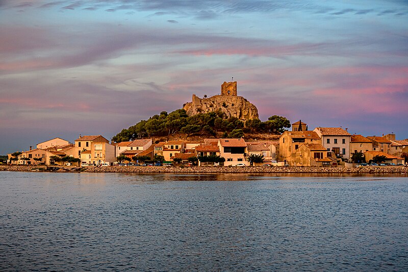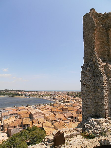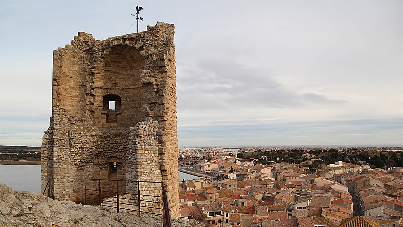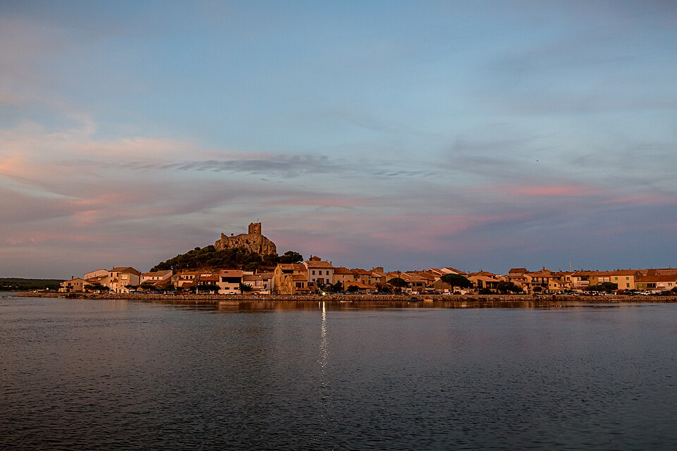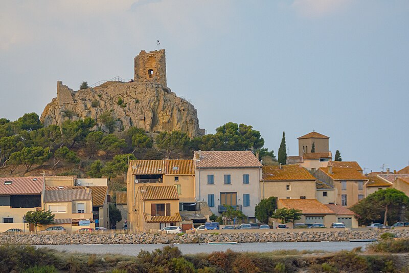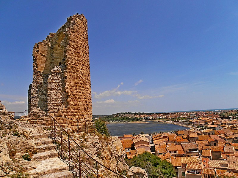 La tour Barberousse, située dans le village côtier de Gruissan (Aude, Occitanie), domine les ruines d’un château fort inscrites au titre des monuments historiques depuis le 14 avril 1948. Un « castrum » est mentionné dès 1165 ; le seigneur était l’archevêque de Narbonne, dont les droits sont signalés dès 844, et, en temps de guerre, le roi prenait possession du château, comme l’atteste une procédure de 1289. La chronologie des constructions repose sur deux documents : une charte de 1245 mentionne une vieille tour au centre de la partie supérieure du site, et un document de 1247 précise qu’une autre tour fut édifiée vers l’entrée, celle que l’on reconnaît aujourd’hui. La tradition locale attribue la tour à Khair Eddin Barberousse, mais cette attribution est contestée et pourrait résulter d’une confusion avec Gaspar Dot, dit « Barbe Roussette », corsaire actif en 1589 et lié aux événements qui touchèrent Gruissan entre 1589 et 1594. L’enceinte paraît postérieure à la tour ; des renforcements défensifs ont été entrepris vers 1333, lorsque Narbonne dut solliciter la protection du roi face aux attaques de pirates. Le fort fut abandonné au XVIIe siècle et, selon une source, Richelieu ordonna sa destruction ; une partie des murs s’effondra en 1797 et les démolitions ultérieures résultent principalement de prélèvements de matériaux par les habitants. La forteresse occupe un plateau rocheux escarpé ; la tour occupe la pointe nord‑est et le pourtour de l’enceinte, adapté au relief, présente un plan très irrégulier. Sauf au voisinage de la tour, il ne subsiste que les bases des courtines extérieures. La tour elle‑même est de plan circulaire : sa moitié sud‑ouest a été arasée, l’élévation comprend deux étages voûtés et une casemate voisine suggère l’existence d’une salle souterraine. La salle basse a sa voûte effondrée et est éclairée par une embrasure couverte de dalles ; la salle haute, voûtée en coupole, communiquait avec l’étage supérieur ou la terrasse par un escalier en vis logé dans l’épaisseur du mur. Une tourelle d’escalier mutilée marque le départ d’une courtine postérieure à la tour, et cet angle rentrant était protégé par une petite bretèche. Le donjon cylindrique est également présenté comme daté de la fin du XIIIe siècle ou du début du XIVe siècle et est construit en pierre à bossage. Le village en circulade s’est développé au pied du rocher ; l’église paroissiale Notre‑Dame de l’Assomption se trouve au pied des ruines et le site offre un panorama sur le village, la côte, l’étang, les marais salants et le port de Gruissan.