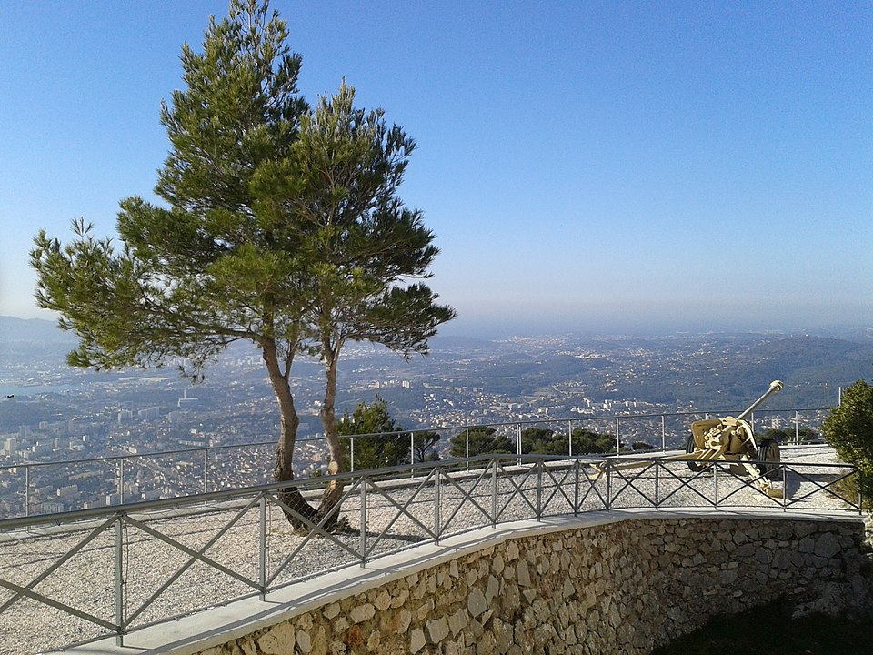 La tour Beaumont se situe au sommet du mont Faron, qui domine la ville de Toulon, dans le Var. Elle a été édifiée au milieu du XIXe siècle dans le cadre des grands programmes de renouvellement des fortifications lancés à partir de 1836 et poursuivis jusque vers 1844. À cette époque, plusieurs bâtiments casematés destinés à compléter les forts, redoutes et batteries furent proposés ; certains prenaient la forme de tours circulaires ou semi‑circulaires à mâchicoulis. La première tour réalisée, celle de la Croix‑Faron commencée en 1840 avec un plan en fer‑à‑cheval et une cour centrale, servit de modèle aux projets de 1843 ; la tour Beaumont fut la seule de ces propositions effectivement réalisée. Prévue dès 1841 mais jugée moins urgente que d'autres ouvrages, sa forme définitive fut arrêtée en 1843 par le chef du génie Dautheville et dessinée par le capitaine Noël, qui conduisit le chantier entre 1843 et 1845. La tour fut armée de quatre pièces d'artillerie en 1847. Un projet d'extension présenté en 1874 aboutit à la construction, en 1875, d'une batterie au pied nord de la tour, complétée peu après par un magasin adossé ; le nombre d'affûts de la batterie n'est pas précisé, la capacité d'hébergement de la tour ayant conduit à l'estimer à huit ou neuf canons. Désaffectée après le premier conflit mondial, la tour et la batterie furent abandonnées. La construction du téléphérique du Faron en 1958‑1959 facilita l'accès du public aux abords par la gare supérieure. Réhabilitée après la Seconde Guerre mondiale comme lieu de mémoire de la libération de Toulon, la tour et son magasin furent choisis en 1963 pour accueillir le Mémorial du Débarquement en Provence de 1944 ; Pierre Pascalet assura la maîtrise d'œuvre de la reconversion qui introduisit de nouveaux locaux, inaugurés en août 1964. L'ensemble de la tour, à l'exclusion des adjonctions contemporaines liées au mémorial, y compris le fossé et le pont‑levis avec ses rampes d'accès, est inscrit au titre des monuments historiques par arrêté du 24 février 2014.
