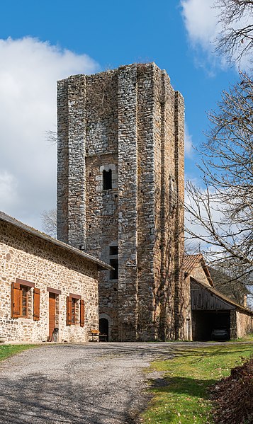 La tour d'Echizadour devait faire partie de la ceinture de défense des possessions féodales de la famille des vicomtes de Limoges. Vestige d'un château fort situé aux limites des vicomtés de Limoges et de Comborn, elle date de la limite entre le XIe et le XIIe siècle. L'édifice, de plan carré, s'élève à 24 mètres de hauteur. Il est construit en moellons de granit disposés par assises. Sur la façade ouest subsiste une baie géminée dont la colonne ou le trumeau a disparu.