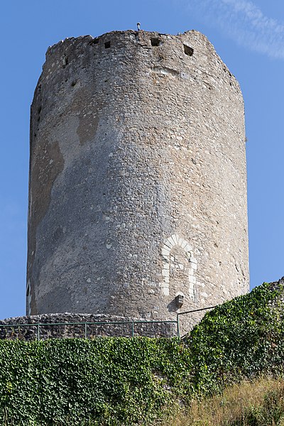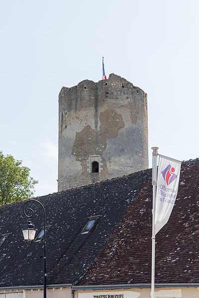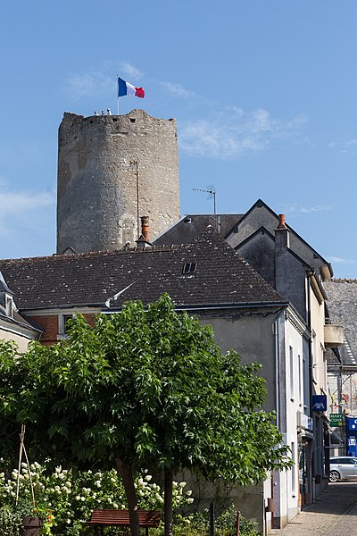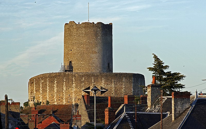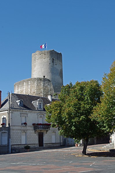 La Tour de César est le donjon du château de Châtillon-sur-Indre, dans l'Indre, en région Centre-Val de Loire. Les premières mentions font remonter la seigneurie à un don de Charles II le Chauve à un fidèle nommé Haimon ; ses descendants la détiennent avant que Foulque Nerra, comte d'Anjou, n'en prenne le contrôle vers 1030. Le château entre progressivement dans l'orbite angevine puis affirme son rôle militaire à la frontière des domaines angevins et royaux au XIIe siècle, notamment sous Henri II Plantagenêt. Philippe Auguste s'y rend en 1188 et, par la suite, le château est donné en gage au roi de France par Richard Cœur de Lion en 1193 avant d'entrer définitivement dans le domaine royal au début du XIIIe siècle. Philippe Auguste concède la seigneurie à Dreux de Mello en fief en 1205, puis la châtellenie revient définitivement à la couronne sous Philippe III au XIIIe siècle. Pierre de La Brosse, reçu en 1274, fait édifier les bâtiments du logis avant sa disgrâce et l'annulation de ses biens en 1278 ; ces travaux témoignent d'une transformation du site vers un usage plus résidentiel. Le château sert occasionnellement de résidence royale aux XIIIe et XIVe siècles et conserve un personnel permanent ; des séjours royaux sont attestés sous Philippe III, Philippe IV et le futur Jean II. Après diverses cessions et engagements, la seigneurie change de mains à plusieurs reprises (notamment Louis d'Orléans, Louis d'Amboise et Tanneguy du Chastel) puis redevient souvent domaine royal ; Anne de Bretagne, Charles VIII, François Ier et d'autres seigneurs successifs sont liés à son histoire. Au début du XVIIe siècle, Florent Guyot puis César de Bourbon possèdent la terre ; Georges Ysoré en devient propriétaire en 1648, puis la famille Amelot la détient jusqu'à la Révolution. Après la Révolution, le château est morcelé ; le donjon est vendu séparément en 1809 et donné à la commune en 1867, qui entreprend divers travaux d'aménagement et de restauration. Entre la fin du XIXe siècle et le XXe siècle, des transformations notables ont lieu : construction d'une école, usage des anciennes prisons comme caserne de pompiers, adaptation du donjon en château d'eau dans les années 1930 et ouverture au public du sommet de la tour. Le donjon est classé au titre des Monuments historiques en 1909 ; des dommages causés en 1940 entraînent des réparations dans les années 1954-1957 et des campagnes de restauration se poursuivent du XXe au XXIe siècle, avec des protections et inscriptions entre 1999 et 2011. Le site s'organise autour d'une motte castrale aménagée sur un éperon calcaire et d'une chemise qui fait le tour de la motte ; la base de la motte mesure aujourd'hui moins de 50 mètres de diamètre. La chemise, la plus ancienne construction visible, est une muraille à pans multiples en moellons et chaînage d'angle d'un diamètre moyen extérieur d'environ 27 mètres, atteignant 31 mètres sur sa partie extérieure, et d'une épaisseur d'environ 1,55 mètre ; elle comporte vingt-trois pans et est probablement datable du milieu du XIIe siècle. La grosse tour, ou donjon cylindrique, a été édifiée ultérieurement, vraisemblablement dans les années 1180 ; elle est légèrement tronconique, fondée sur le rocher, de 11,70 mètres de diamètre au sol, d'environ 18 mètres de hauteur apparente et d'un niveau souterrain creusé dans la motte sur 6 mètres. Les murs de la tour atteignent 3,10 mètres d'épaisseur à la base ; le niveau souterrain est séparé du niveau supérieur par un plancher appuyé sur un retrait du mur et abrite une salle voûtée en coupole d'environ 6,15 mètres de diamètre. Les étages supérieurs présentent des salles d'un diamètre voisin de 6,30 mètres ; l'accès primitif s'ouvrait côté nord-ouest, à six mètres au-dessus du sol, sur le troisième niveau ; cette ouverture a été murée et l'organisation des circulations basses reste mal connue. Le donjon n'est pas centré dans la chemise et des différences d'aspect montrent que la construction a profondément modifié les aménagements antérieurs : tourelles, bâtiments adossés à la chemise et aménagements intérieurs ont évolué au fil des siècles. Au XVe siècle, la salle du premier étage a été réaménagée avec l'installation d'une cheminée et l'ouverture d'une nouvelle porte ; un pont-levis et une passerelle reliaient autrefois la tour à la chemise par une pilette aujourd'hui disparue. La perte du toit et du plancher supérieur à la fin du XVe ou au début du XVIe siècle a conduit à la pose d'un dallage en gradins concentriques au premier étage pour protéger les niveaux inférieurs des infiltrations ; cet aménagement remonte à une période antérieure à 1559. Des dommages et des remaniements importants sont intervenus jusqu'au XIXe siècle, notamment la destruction d'une portion de la chemise du côté de la place du château visible sur des dessins et plans anciens. Selon Jean-Pierre Ravaux, la Tour de César constitue, en l'état, l'un des plus anciens donjons cylindriques voûtés connus en France.