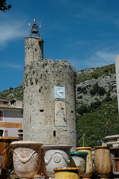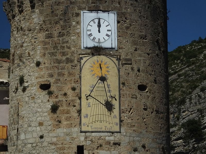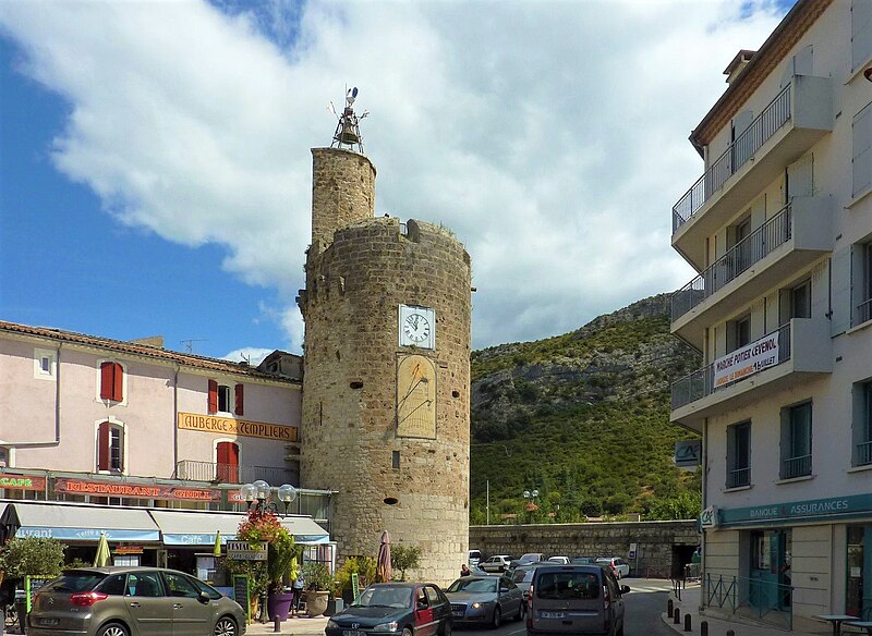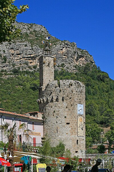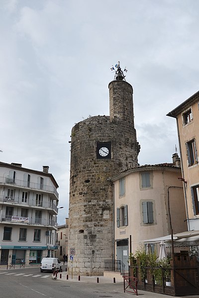 La tour de l'Horloge d'Anduze, située en bordure du Gardon, est un vestige des anciens remparts de la ville. Érigée en 1320, elle flanquait l'angle sud-est d'une vaste enceinte qui se raccordait aux fortifications du château construit au XIIe siècle. Tour ronde d'origine, elle joua un rôle à la fois défensif et de guet, ce qui a entraîné son entretien et des adaptations aux armes nouvelles. Du chemin de ronde du XIVe siècle subsistent quelques corbeaux ; l'étage correspondant a par ailleurs été surélevé et le clocheton qui le couronne date du XVIIIe siècle. Devenue horloge de la ville en 1569, la tour fut épargnée lors de la destruction des remparts ordonnée en 1629. Une cloche y fut installée en 1701. D'une hauteur totale de 22 mètres et construite sur trois niveaux, son architecture rappelle aujourd'hui celle de la tour de Constance d'Aigues-Mortes. La tour constitue l'un des derniers vestiges visibles des anciens remparts, avec le porche et le Château-Neuf ; quelques portions d'enceinte subsistent également dans les murs d'habitations voisines. Propriété de la ville d'Anduze, elle a été classée monument historique par arrêté du 30 mars 1978. La méridienne de la tour a été restaurée en 1989.