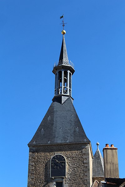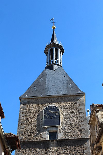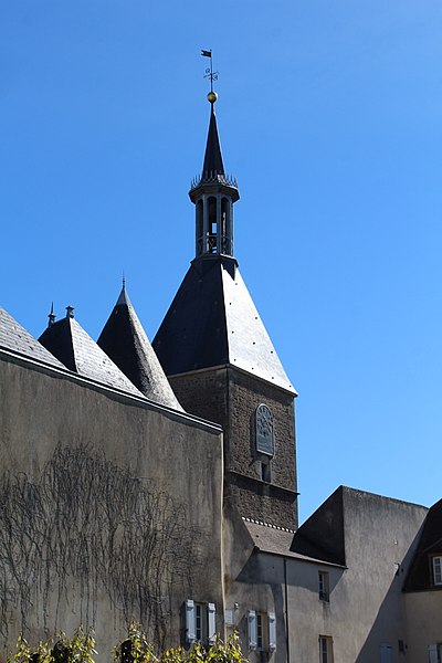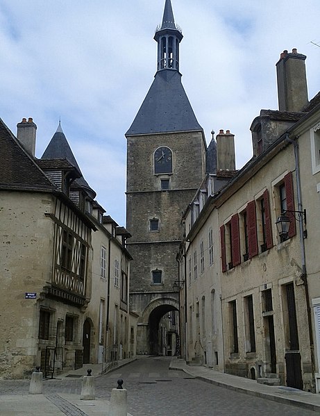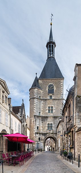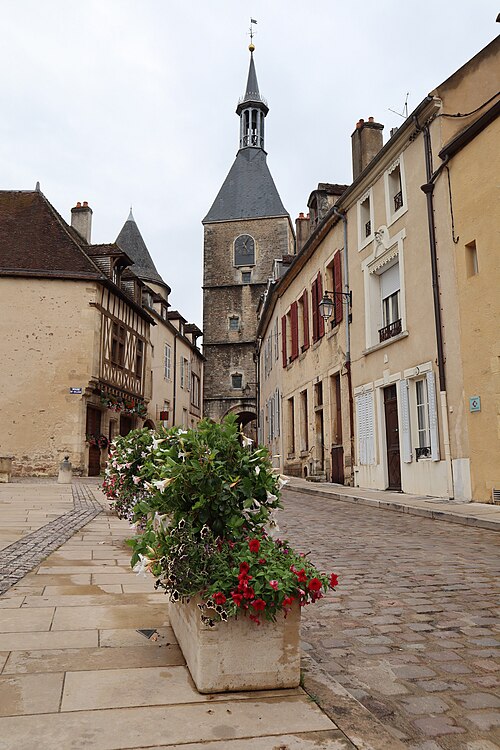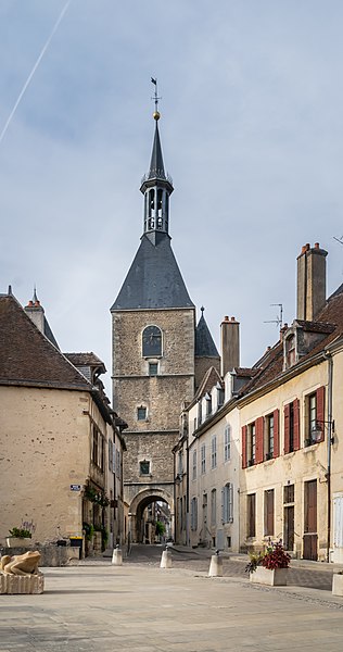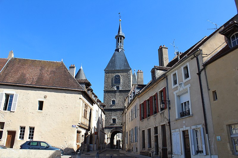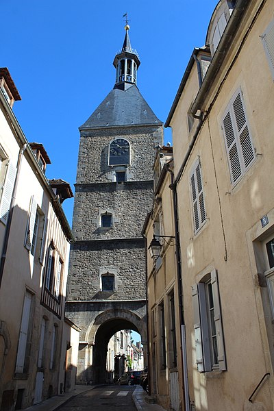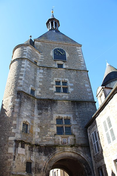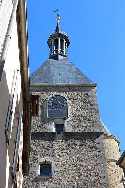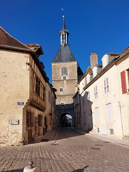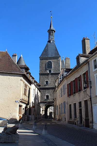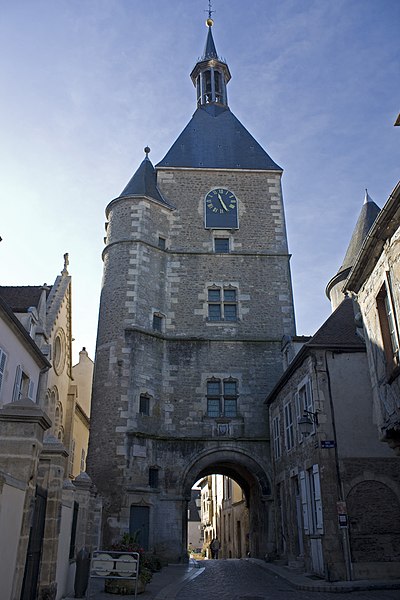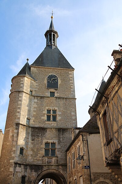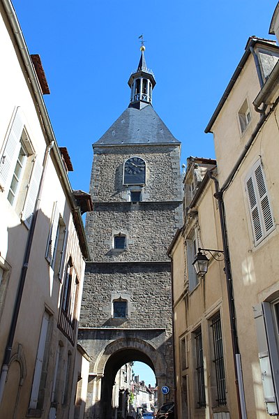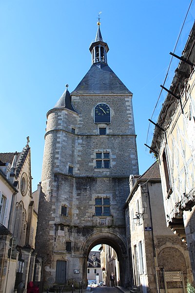La tour de l'Horloge est un édifice fortifié situé à Avallon, dans le département de l'Yonne. Construite en février 1456 à l'endroit le plus élevé de la ville, elle a été érigée après la Guerre de Cent Ans pour prévenir la population de l'arrivée d'envahisseurs. Élevée au‑dessus de la voie publique, elle repose sur une arcade appelée Porte de la Boucherie ou Bouchoise, comme d'autres tours de la région. Dès 1460, la tour, haute de 49 mètres et munie d'un campanile, reçoit une cloche de 521 livres (environ 230 kg) et un guetteur y assure une surveillance jour et nuit. Le maître‑maçon Jehan Berg et les charpentiers Nicolas Boulevault et Nichot‑Michot sont les artisans connus ayant participé à sa construction. Un escalier de pierre en spirale dessert plusieurs étages éclairés par des fenêtres à croisillons ; l'une des salles a servi de lieu de réunion pour les échevins jusqu'en 1772. À la fin du XVIIIe siècle, la tour nécessitait des réparations ; la démolition de la toiture fut alors envisagée mais abandonnée après l'opposition des habitants conduite par l'architecte Jacques Nicolas Caristié. Les travaux de réparation et la reconstruction complète de la flèche eurent lieu entre 1825 et 1835. À partir de 1862, la Société d'Études d'Avallon s'y installe, restaure deux salles et fait réapparaître les peintures décoratives d'origine ; l'une de ces salles abrite jusqu'en 1912 les collections qui formeront le noyau du futur musée archéologique. L'édifice est classé au titre des monuments historiques en 1930. La façade porte le blason de la ville et la devise Esto nobis, domine, turris fortitudinis (sois pour nous, Seigneur, une tour inexpugnable) ; on y trouve également une plaque et une porte d'accès, et la tour donne sur le quartier Saint‑Lazare ainsi que sur la ville.