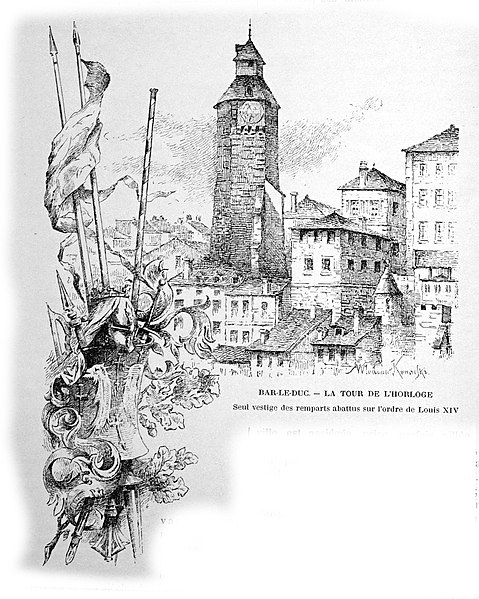 La Tour de l'Horloge, située à Bar-le-Duc (Meuse, Lorraine), est une ancienne tour fortifiée dont la base date du XIIe siècle et qui constitue l'un des rares vestiges des fortifications du château de la Ville Haute. À l'origine circulaire et l'une des six tours de l'enceinte, elle était pourvue de meurtrières et d'embrasures permettant la surveillance des alentours et le tir de projectiles. Un premier « gros horloge » y fut installé en 1381 pour sonner le couvre-feu, prévenir des attaques et, par un code connu des habitants, indiquer la localisation des incendies. Par la suite, un second cadran fut posé en 1608, orienté vers la Ville Basse, puis un troisième en 1752 pour la Ville Haute ; ces cadrans ont fait de la tour un emblème de la ville. La tour, également appelée Tour du crieur, Tour du beffroi ou Tour du couvre-feu, est aujourd'hui semi-circulaire, conséquence partielle du démantèlement ordonné des fortifications en 1670, qui l'a laissée éventrée et a fait disparaître son cadran tourné vers le château. Sa partie haute a été remaniée à la suite d'incendies au début du XVIe siècle et en 1639, et la tour a été plusieurs fois foudroyée, provoquant la fonte de ses cloches. Après un sinistre en 1940, sa toiture a été restaurée. La tour et les remparts situés au-dessous ont été classés monuments historiques le 10 septembre 1941. En 1994, le cadran orienté vers la Ville Basse a été restitué selon sa facture d'origine. Son histoire a été étudiée dans des publications et valorisée notamment par un web-documentaire réalisé en 2016 par Guillaume Ramon. Depuis sa transformation en horloge, la tour, accessible depuis un long escalier appelé les « quatre-vingts degrés » qui descend vers la Ville Basse, reste un repère urbain et un témoignage de l'histoire militaire et civique de Bar-le-Duc.
