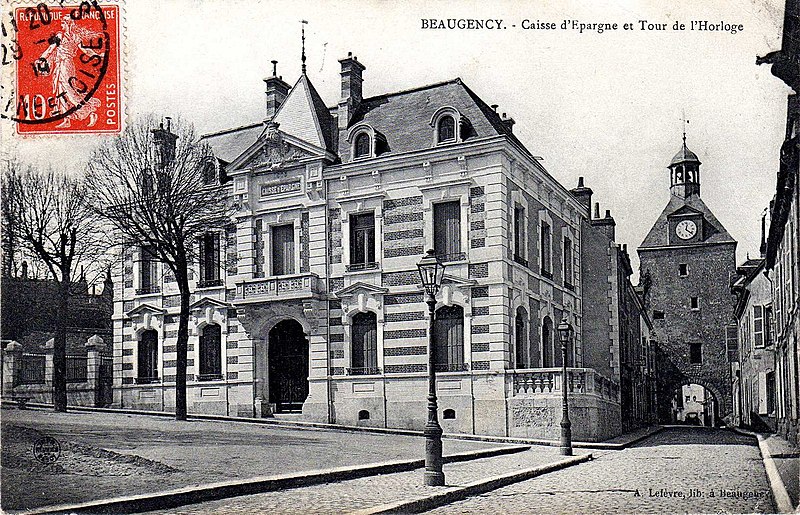 La tour de l'Horloge, autrefois appelée Tour du Change, appartient par sa construction au Moyen Âge ; sa date précise est inconnue. Elle était l'ancienne porte Vendômoise et présente un plan carré. Elle faisait partie de la première enceinte de Beaugency, dont subsiste seulement un court vestige sur sa face orientale ; cette enceinte est mentionnée dans un acte de 1081 relatif à l'église du Saint‑Sépulcre (actuelle église Saint‑Étienne), située "prope murum castri". La tour pourrait avoir été élevée par Lancelin Ier, seigneur de Beaugency, peut‑être en même temps que le donjon dont les travaux auraient pu commencer entre 1015 et 1030 ; cela expliquerait le début de la construction de l'église du Saint‑Sépulcre entre 1030 et 1050, près de la première enceinte. La partie supérieure originelle était une lanterne octogonale couverte en plomb, terminée par une plate‑forme ornée d'une balustrade. En 1680, des réparations considérables furent réalisées sur des plans de l'architecte Jarry‑Lemaire et la tour reçut à cette époque un nouveau couvrement. En 1749, l'intendant envisagea sa démolition, estimant qu'elle menaçait ruine, mais les habitants s'y opposèrent. En 1763, l'état de la charpente imposa sa destruction et sa reconstruction avec un dôme en plomb et un lanterneau ; un document du XVIIIe siècle signé Lecomte donne un dessin très proche de l'aspect actuel, ce qui laisse supposer que cette opération et peut‑être l'escalier en bois accolé à la façade ouest datent du XVIIIe siècle. Les baies cintrées de la porte, dont deux sur la face nord, reposent sur un simple lit de moellons provenant de la façade et sont comparables aux baies primitives du donjon. Selon J. N. Pellieux, avant la construction de l'escalier on accédait à la tour depuis la maison du prétoire par un perron correspondant extérieurement à une porte encore visible au‑dessus de l'arcade côté ville. Le timbre de l'horloge fondu en 1511 porte une inscription en ancien français mentionnant Jehan Mallier et Guillaume Charles parmi les procureurs et notaires ; le dossier IA45000152 renvoie à la maison de Guillaume Charles. L'horloge de la ville fut installée dans la tour en 1853.