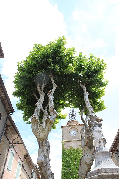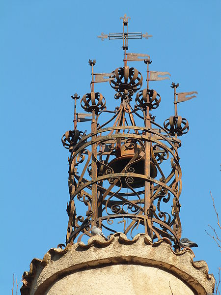 La tour, de plan carré, abrite dans sa partie haute la chambre de l'horloge, une petite pièce voûtée. Au centre de la voûte s'ouvre une tourelle qui donne accès au campanile. De type cosmologique, le campanile présente une embase cylindrique à trois niveaux de cerclage et un décor de volutes affrontées. Le couronnement en coupole est surmonté d'une sphère solaire, dominée par une croix aux branches fleurdelisées.