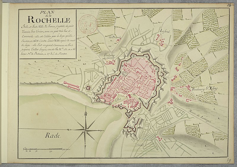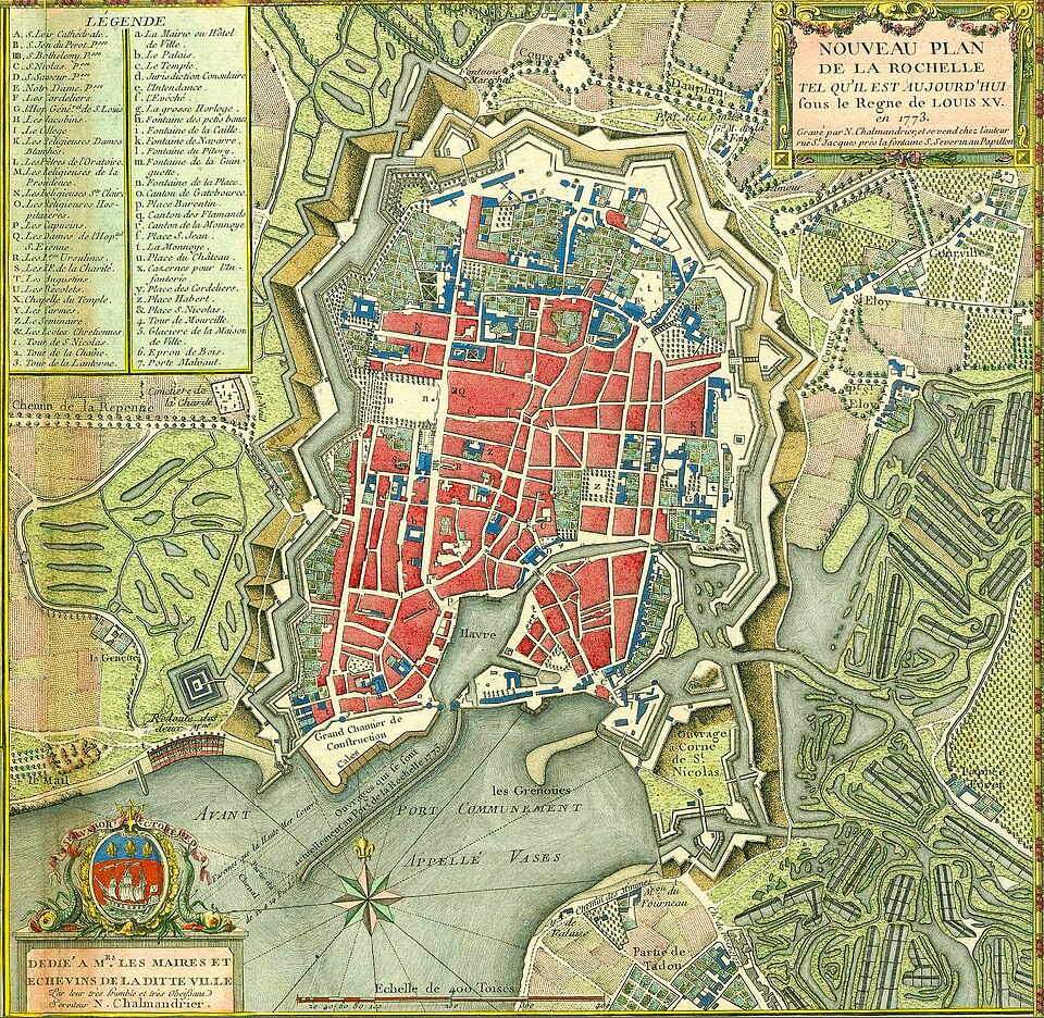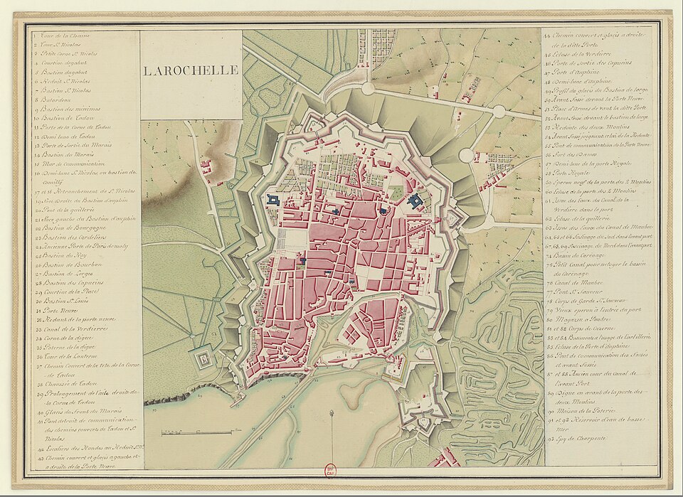 Le port de La Rochelle a conservé l'aspect général qu'il présentait au Moyen Âge ainsi que les principaux ouvrages défendant son entrée : la tour de la Lanterne, la tour de la Chaîne construite au XIIIe siècle et remaniée au XVe siècle, la courtine qui réunissait les deux tours et le donjon ou tour Saint‑Nicolas, achevé en 1384. À la fin du XVIIe siècle, face à la menace d'un débarquement anglais, la ville fut finalement transformée en place forte : l'ingénieur Ferry, assisté de plusieurs collègues, lança en 1689 la construction d'une enceinte de type Vauban qui intégra au sud les fortifications médiévales épargnées en 1628 et suivit globalement le tracé de 1629. On y retrouve des éléments encore visibles, comme l'escarpe et la contrescarpe en terre coulante entre lesquelles coule le ruisseau de Lafond ; les fronts nord et est sont maçonnés. L'enceinte comportait cinq portes — dont les portes Dauphine (1699), Royale (1706) et Saint‑Nicolas — et six ouvrages bastionnés, parmi eux le nouvel ouvrage à cornes Saint‑Nicolas. Des travaux se poursuivirent aux XVIIIe et XIXe siècles : renforcement du front nord, surhaussement des courtines, reconstruction de la porte Saint‑Nicolas en 1858 lors de la construction de la gare, puis démolition partielle du bastion du Gabut au tournant du siècle suivant. La place fut déclassée par une loi du 17 mars 1902 et, au XXe siècle, de larges brèches furent ouvertes pour aménager des voies de circulation et, plus tard, pour l'extension de l'hôpital Saint‑Louis.