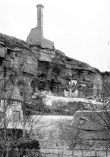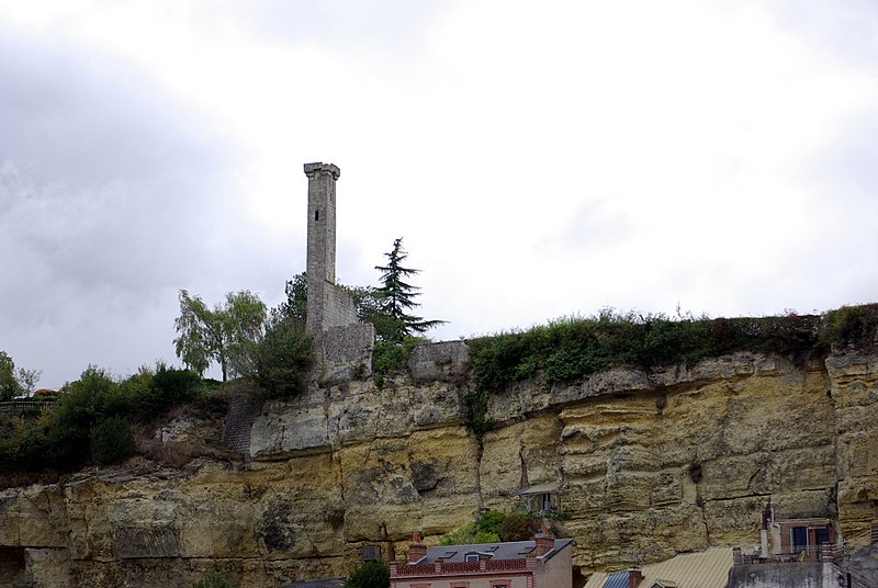 La Lanterne de Rochecorbon est l’unique vestige d’une forteresse médiévale implantée sur un éperon rocheux dominant la Loire, dans la commune de Rochecorbon (Indre-et-Loire), et classée monument historique sur la liste de 1840. L’ouvrage se compose d’un pan de muraille auquel s’appuie une tour creuse dont la façade prolonge la première assise rocheuse du coteau. La forteresse occupait l’extrémité d’un éperon limité au sud par la vallée de la Loire et à l’est par le vallon d’un petit affluent, et la partie la plus ancienne du village se situe dans cette vallée et le long de la Loire. Le site, naturellement facile à défendre, a très vraisemblablement accueilli une motte castrale avant la construction du château en pierre ; il n’en subsiste aucun vestige et certains historiens attribuent, sans preuve, sa réalisation à l’évêque Hardouin. Thibaud des Roches entreprit en 1093 l’édification d’une forteresse de pierre après en avoir obtenu l’autorisation du comte d’Anjou, mais Foulques IV d’Anjou s’en empara vers 1100 avant son achèvement. Après la paix conclue avec la maison d’Anjou en 1133, Robert de Brenne reprit les travaux : une enceinte maçonnée remplaça la palissade et une chapelle fut construite dans la cour en 1157, puis Geoffroy de Brenne, à partir de 1214, agrandit les bâtiments et compléta l’enceinte. Le château passa ensuite à la famille de Mézières par remariage, connut des restaurations au début de la guerre de Cent Ans, fut brièvement occupé par des Anglo-Gascons en 1424 puis évacué en 1427 contre rançon payée par la ville de Tours. La paix ultérieure fut néfaste au site : Geoffroy de Maillé, qui s’était endetté pour des travaux, délaissa le château en 1475 et ses héritiers laissèrent progressivement l’édifice se dégrader. Vendu comme bien national en 1789 alors qu’il n’était déjà plus qu’une ruine, le domaine intéressa davantage pour ses vignes que pour ses pierres ; une peinture de 1797 montre la lanterne au milieu de murs effondrés. La tour elle-même subsiste couronnée de créneaux et s’appuie à l’angle sud‑ouest de l’enceinte ; son attribution chronologique reste débattue, certains la datant de la fin du XIe siècle tandis que d’autres, observant le style de son couronnement, la rattachent au XVe siècle ou y voient une importante restauration. Aucune étude définitive ne tranche cette question et les sources signalent des hauteurs différentes selon les descriptions. Bien qu’il s’agisse d’un édifice privé non ouvert au public, la lanterne est fréquemment accessible lors des Journées européennes du patrimoine. Au XXIe siècle son avenir est menacé : construite à l’origine en retrait du bord du coteau, elle se rapproche progressivement du vide à la suite d’effondrements du tuffeau, roche poreuse qui éclate sous le gel, et le coteau qui la porte est creusé de cavités naturelles et artificielles ; malgré des opérations de surveillance et de consolidation, on craint qu’un dernier éboulement ne l’entraîne. Sa situation isolée au bord du coteau a alimenté des traditions locales : on raconte la légende du chevalier Robert de Brenne qui, après avoir abattu un aigle, fit élever une tour fanal à l’endroit où la flèche tomba, et d’autres traditions présentent la lanterne comme un phare guidant la navigation sur la Loire ou comme une lanterne des morts ; aucune de ces attributions n’est toutefois confirmée par des sources écrites.