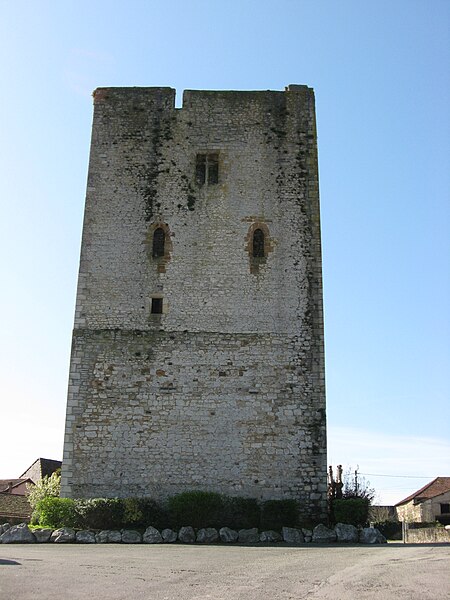 La tour de Labastide-Villefranche est un ancien donjon implanté à l’extrémité est du village de Labastide-Villefranche, dans les Pyrénées-Atlantiques (Nouvelle-Aquitaine). Selon les chartes de la fin du Moyen Âge, elle est appelée « la Bastide de Béarn » et aurait été créée en 1338; d’autres sources situent la fondation de la bastide vers 1292 par Marguerite, fille de Gaston VII. Destinée à protéger le royaume contre le voisinage du royaume de Navarre et du duché de Guyenne alors tenu par les Anglais, une tour de guet primitive aurait été remaniée en donjon vers 1338 par Gaston Fébus, qui lui adjoignit un château communiquant par un pont-levis. Des assises épaisses ont été relevées au sud du donjon, suggérant l’emplacement possible de ce château, dont les vestiges semblent avoir disparu lors de transformations ultérieures, peut‑être lors de la construction d’un temple protestant. Les remparts et bastions de la ville furent détruits en 1523 lors de l’invasion par les troupes de Philibert de Châlons, prince d’Orange; la tour est la seule structure subsistante. En 1853, la foudre endommagea la construction; en 1922, le mur sud a servi de fronton de pelote. La tour est classée au titre des monuments historiques par arrêté du 19 avril 1915. Construite en calcaire et en granit, elle présente une base carrée et s’élève sur 28 mètres, couronnée de mâchicoulis. Le rez-de-chaussée est muet, le premier étage est percé de meurtrières et des fenêtres, attribuées par les sources au XVe ou au XVIe siècle, apparaissent aux étages supérieurs, ce qui laisse supposer une surélévation à l’époque médiévale tardive.