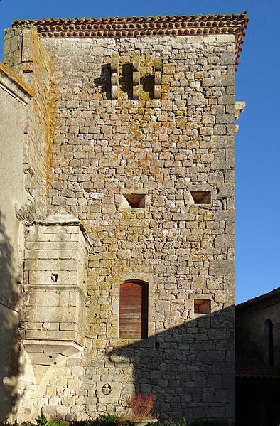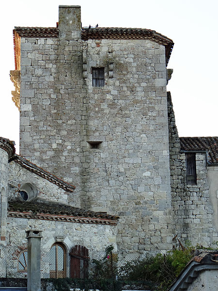 La tour de Laugnac, dernier vestige du château de Laugnac, se dresse sur la commune de Laugnac (Lot‑et‑Garonne), près de l'église Saint‑Vincent. Donjon carré, elle paraît dater de la seconde moitié du XVe siècle après des remaniements aux XVe et XVIe siècles. Sur la face ouest a été ajoutée une tourelle carrée en encorbellement, percée d’un trou pour arquebuse et de trois meurtrières; les faces nord et est présentent elles aussi des corbeaux et des meurtrières. La tour, composée de trois étages, est percée de demi‑croisées moulurées et de canonnières; l'intérieur conserve un escalier à vis et une cheminée en pierre du XVe siècle. Le château, bâti sur un plan quadrangulaire, comprenait en outre un bâtiment nommé la "Recette", interprété comme magasin d'approvisionnement et lieu de perception. La "Recette" a été acquise par la commune en 1863 et restaurée récemment; un nouveau presbytère a été accolé à la tour vers 1870. La tour fait l'objet d'une inscription au titre des monuments historiques par arrêté du 20 juin 1950. Une maison forte existait à Laugnac avant le XIVe siècle pour protéger le prieuré et le bourg; Jean Burias mentionne l'existence du château en 1310. Des documents citent un Bernard de Laugnac en 1339 et un sieur Revignan en 1353; les Revignan furent dépossédés après une querelle avec les seigneurs de Montpezat. En 1475, Charles de Montpezat s'empare de la seigneurie; les Montpezat‑Laugnac procèdent ensuite à des agrandissements et reconstructions. Alain de Montpezat entreprend la construction d'un nouveau château pour son fils François en réutilisant des débris de l'ancien réduit; ce château comprenait un corps de logis prolongé de deux tours pourvues de mâchicoulis et de meurtrières pour armes à feu. Les guerres de Religion marquent le site: Antoine, fils d'Alain, s'empare brièvement du château en 1560; le lieu est pris et repris en 1565, Monluc réclame des pièces d'artillerie en 1572 pour reprendre Laugnac, et en 1576 le château est de nouveau aux mains des protestants. Après la mort de François II de Montpezat, un inventaire est dressé le 25 mai 1590; Honorat de Montpezat remet ensuite le château en état. L'entretien décline au XVIIe siècle et une transaction de 1662 marque l'abandon progressif des lieux. Le château passe aux Monestay‑Chazeron en 1694; en août 1728 la foudre provoque une brèche importante dans la façade est et la dégradation se poursuit après 1790.