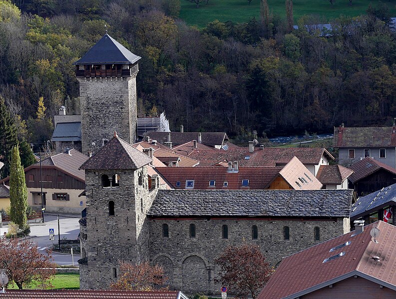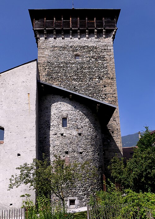 Le Château de Montmayeur, ou tour de Montmayeur, se dresse dans le bourg sud d'Aime, en Savoie, près d'un pont sur l'Isère, à l'angle de la rue de la Gare et de la voie ferrée ; il commandait un pont à péage sur l'Isère. Selon la notice de la base Mérimée, les éléments les plus anciens remontent au XIIIe siècle, tandis que la tour est parfois qualifiée d'ancienne maison forte du XIVe siècle et que la maison forte paraît dater du XVe siècle. Le site faisait partie d'un ensemble défensif protégeant le bourg d'Aime, relié à la tour du Maney et à une tour carrée sur la rive opposée, ainsi qu'à la tour ronde de Poëncet, le tout placé sous la protection du château de Saint-Sigismond. La tour semble avoir appartenu à la famille de Villette ; elle est citée en 1392 lors de l'inféodation à Claude de Montmayeur, puis en 1447 lors de l'investiture de Humbert et Claude de Montmayeur. L'inscription partielle au titre des monuments historiques, prononcée le 21 août 1983, concerne uniquement le donjon et le logis. L'ensemble s'organise autour d'une enceinte rectangulaire flanquée de tours rondes aux angles, qui emplaçait la maison forte ; celle-ci se compose d'un logis quadrangulaire dominé en son milieu par une tour-maîtresse carrée. Le donjon mesure 19,30 mètres de hauteur pour 9,55 mètres de côté, avec des murs épais de 2,40 mètres ; il est garni en partie supérieure de mâchicoulis dont subsistent des éléments au sud et à l'ouest, et il est percé de couleuvrinières à visée cruciforme. Les hourds, les créneaux et la toiture à forte pente ont été reconstitués. Au XVIe siècle, la maison forte fut transformée : on aménagea de nouvelles pièces, on adossa au donjon une grosse tour abritant un escalier à vis et un corps de logis rectangulaire. L'accès au premier étage du logis se fait par l'escalier logé dans cette grosse tour ronde, installée dans l'angle formé par le donjon et le logis ; la porte de cette tour d'escalier et une fenêtre du donjon peuvent être datées de la fin du XVe ou du début du XVIe siècle. Les angles, les claveaux d'arc et les pieds-droits des portes et des meurtrières sont constitués de cailloux roulés tirés de l'Isère, noyés dans un mortier de chaux. À l'intérieur subsistent une salle basse voûtée et la salle dite du « prétoire », qui conserve un plafond à la française avec poutres et solives moulurées. À droite de l'ensemble apparaissent les traces d'une tour ronde, probable vestige de l'enceinte.