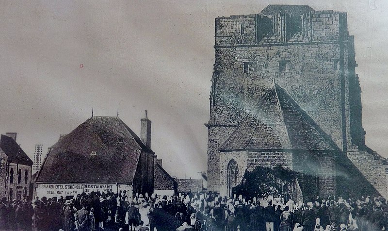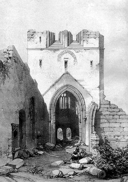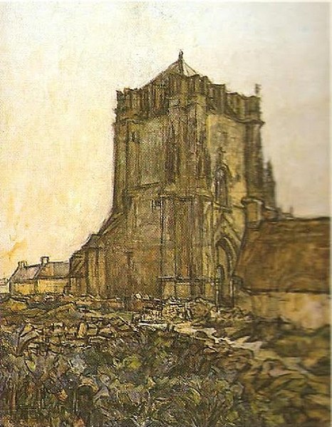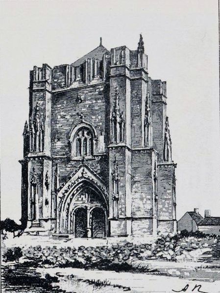 La tour inachevée constitue le seul vestige de l'église, achevée en 1488.