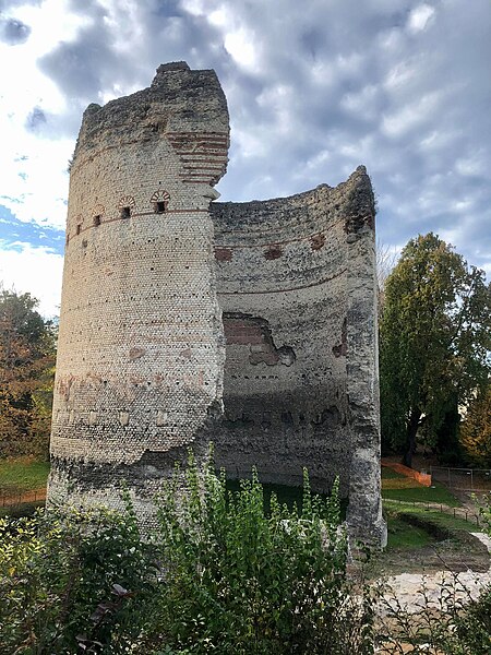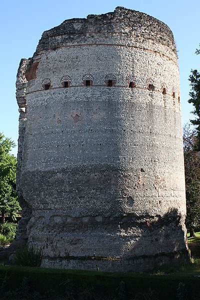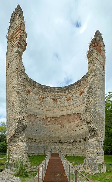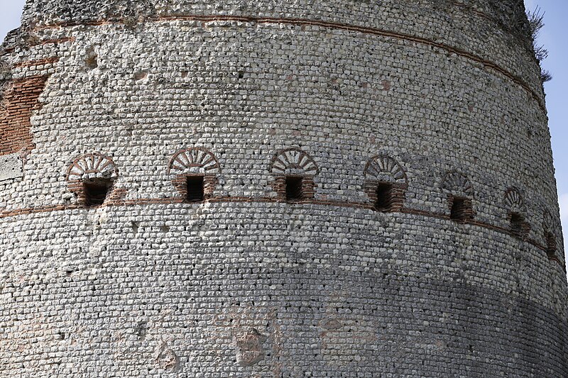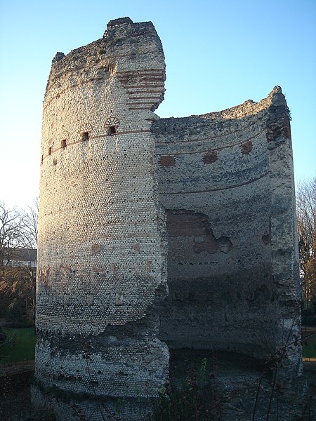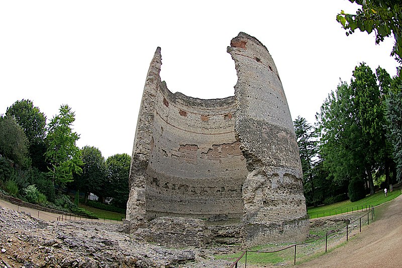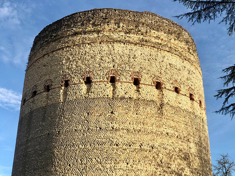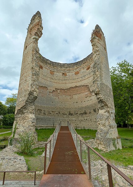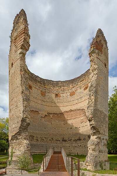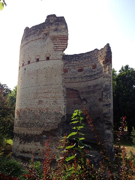 La tour de Vésone est le vestige d'un temple gallo‑romain dédié à Vesunna, la déesse tutélaire des Pétrocores ; elle se situe au sud de Périgueux, dans le quartier de Vésone, en bordure de la ligne de chemin de fer Périgueux–Brive. De plan cylindrique, elle occupe le jardin de Vésone à une cinquantaine de mètres à l'ouest du musée Vesunna ; une brèche de près de neuf mètres entame son flanc est. Les murs, montés en blocage et parementés sur les deux faces de petits moellons taillés, présentent un appareil continu jusqu'à treize mètres de hauteur. À 4,50 mètres du sol, des pierres de taille régulièrement espacées traversent la paroi sur toute son épaisseur et forment à l'intérieur une saillie. Un cordon de deux rangs de briques ceinture le monument à treize mètres ; au‑dessus, des cavités latérales en brique sont visibles et le sommet est fermé par un arc de décharge dont les claveaux alternent brique et calcaire. Le parement de moellons se poursuit jusqu'à un second cordon de briques, puis des cordons similaires se reproduisent tous les 1,32 mètre. On observe à l'intérieur et à l'extérieur quelques plaques d'enduit au mortier de tuileau. Du côté est, une ouverture correspondait à la porte du monument : son cadre en pierre de taille complétait l'ordonnance de la cella et un mur circulaire venait buter contre un massif de maçonnerie au droit de cette ouverture. Des fragments de chapiteaux, de colonnes, de pilastres et de bases de différents diamètres ont été retrouvés ; ils proviennent vraisemblablement d'une colonnade du mur circulaire formant galerie ou de la décoration intérieure. Les études indiquent un diamètre extérieur de 19,60 mètres, un diamètre intérieur de 17,10 mètres, une épaisseur de mur de 2,10 mètres à la base réduite à 1,80 mètre au‑dessus d'un retrait de soubassement ; la tour s'élève entre 21 et 24,46 mètres au‑dessus du sol actuel et atteint 27 mètres depuis le rocher sur lequel elle est fondée. La tour constitue la cella d'un temple élevé au Ier ou au IIe siècle. À l'origine, un péribole rectangulaire de 141 par 122 mètres délimitait un enclos de plus d'un hectare et demi autour d'un temple surélevé par un podium. L'accès se faisait par un pronaos rectangulaire à six colonnes ouvrant sur un péristyle de vingt‑trois colonnes entourant la cella circulaire. L'architecture combine le fanum celtique — corps circulaire entouré d'une galerie basse — et le modèle de temple romain à pronaos et cella, traduisant une synthèse entre romanisation et traditions locales. Les premières fouilles intérieures furent entreprises par Mgr Machéco de Prémeaux mais interrompues en 1751 ; elles furent reprises en 1820 par le comte de Taillefer et Joseph de Mourcin, qui mirent au jour la base du mur circulaire enveloppant la tour et proposèrent qu'il soutînt un péristyle. En 1833 le site, propriété du comte de Taillefer, fut cédé à la ville de Périgueux, et la tour fut classée monument historique en 1846. La construction de la ligne de chemin de fer Périgueux–Brive et l'aménagement des rues voisines entraînèrent la destruction des vestiges de l'enceinte protectrice. En 1894 la ville acquit le jardin pour y installer un square archéologique et fit reprendre des fouilles qui confirmèrent l'interruption du mur circulaire du côté opposé à la brèche, révélèrent des constructions à l'ouest du temple et permirent de déblayer l'intérieur jusqu'au dallage antique. Les fouilles menées par Charles Durand dans les années 1906–1909 dégagèrent le péribole avec ses galeries et mirent au jour le péristyle par lequel s'effectuait l'entrée de la cour du temple. Les inscriptions conservées au musée d'Art et d'Archéologie du Périgord montrent que le sanctuaire était dédié à la Tutela Vesunnae, c'est‑à‑dire à la divinité tutélaire de la ville, alors que le comte de Taillefer avait autrefois proposé une attribution à Isis. La tradition locale attribue la brèche à saint Front, mais elle paraît plutôt liée au retrait des gros blocs formant la porte, qui aurait entraîné l'effondrement de la partie haute. Les études et publications successives ont approfondi la connaissance du site, qui reste un exemple majeur de sanctuaire gallo‑romain en Périgord, et de nombreux documents et photographies montrent la tour dans son parc, des vues du côté ouest, des détails du sommet et des cavités en briques ainsi qu'un panneau représentant saint Front face à un dragon.