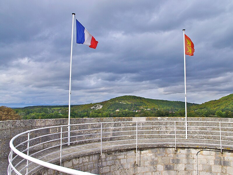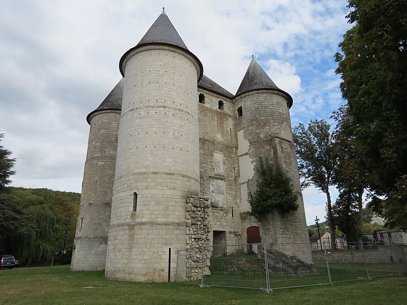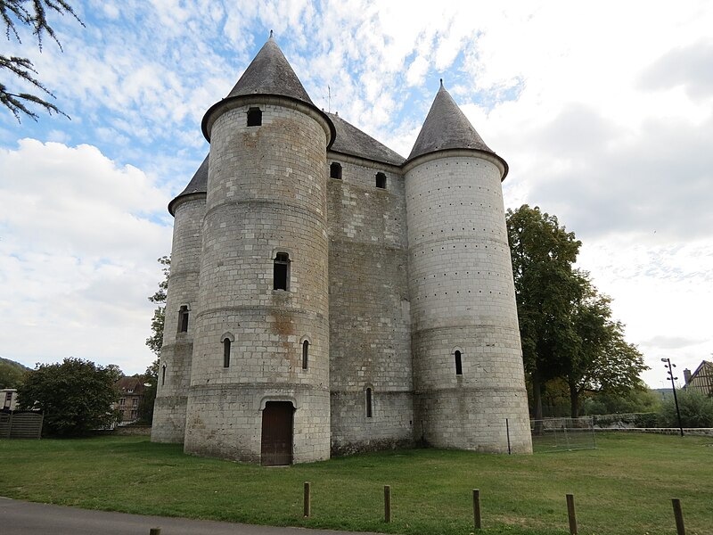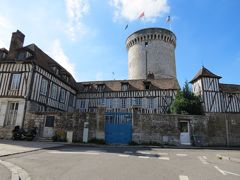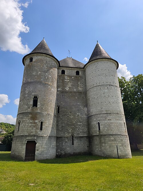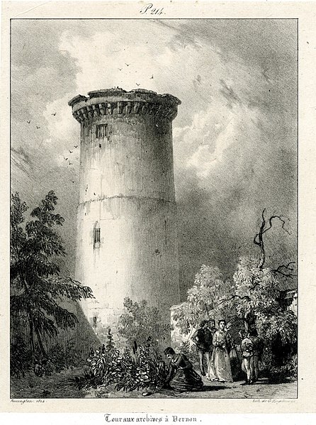 Vers 1040, le seigneur normand Gui de Brionne possédait d'importants châteaux, dont Brionne et Vernon ; selon Guillaume de Poitiers, le duc Guillaume lui aurait concédé ces « très forts châteaux ». La construction primitive d'un donjon quadrangulaire daterait de 1123 et serait due à Henri Beauclerc, dernier fils de Guillaume le Conquérant. Ce donjon faisait partie d'une ligne de forteresses le long de la frontière du Vexin normand. Sous Philippe Auguste, le donjon carré aurait été remplacé par une tour ronde, caractéristique des ouvrages militaires de ce roi. La tour actuelle mesure 22 mètres de haut.