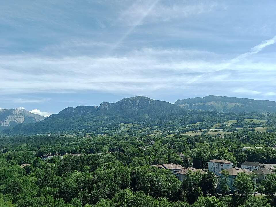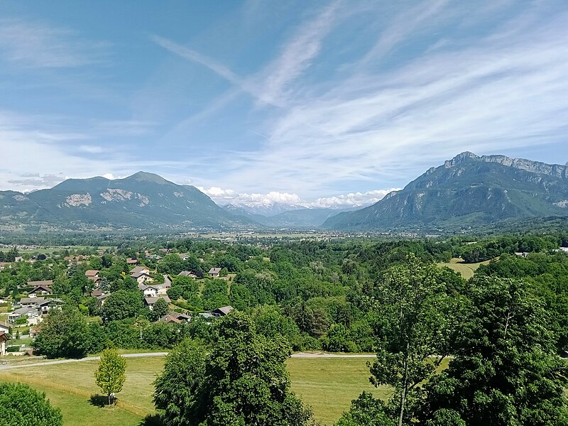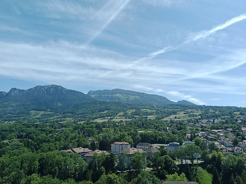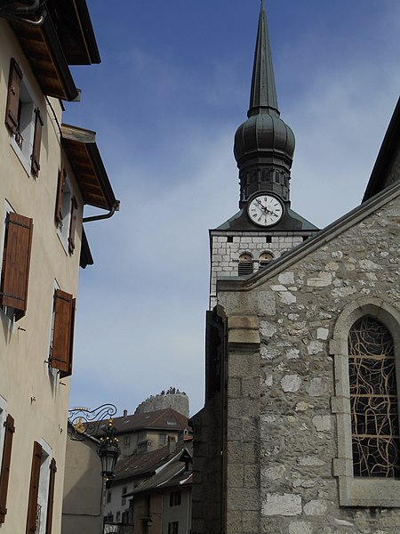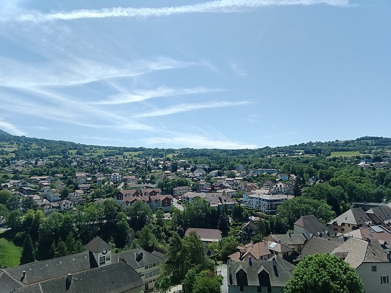 Le site occupe le sommet d'un rocher dominant le bourg médiéval à l'est et contrôlait l'accès à la vallée du Foron; ce rocher, sur le contrefort nord du massif des Bornes, a donné son nom à la ville.