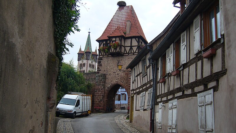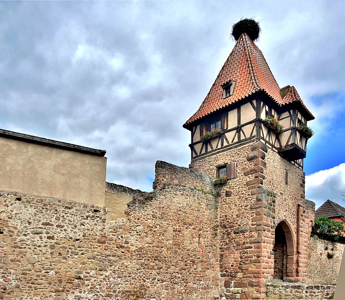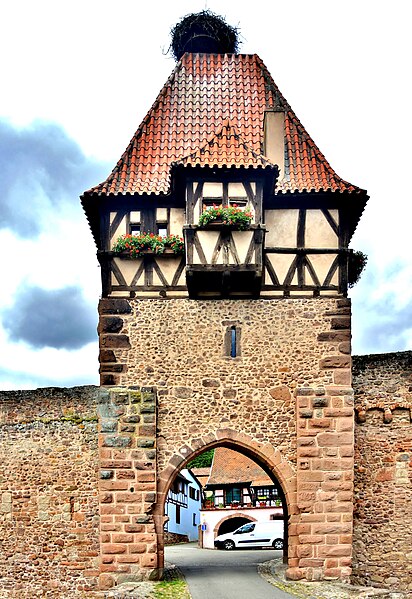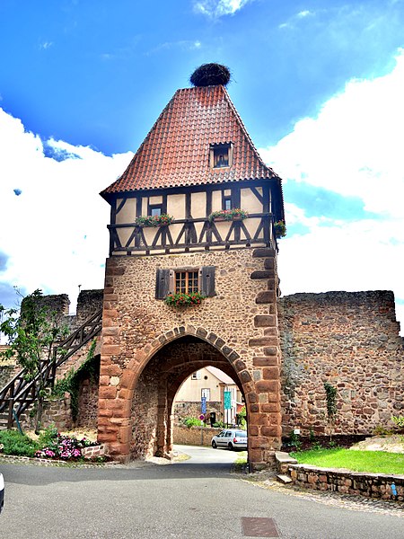 Les restes du château se situent rue de l'église à Châtenois (Bas‑Rhin). Ils comprennent notamment deux murs d'enceinte séparés par un fossé et la porte dite « tour des Sorcières », probablement datée du XVe siècle. Au nord, le presbytère, peut‑être édifié à l'emplacement du logis épiscopal, intègre une tour circulaire d'angle provenant de l'enceinte. En 1297, l'évêque de Strasbourg donna en fief une partie du château fort à Heinrich Waffler von Eckerich. Au XIVe siècle, la fortification est mentionnée comme comprenant le château, l'église et le cimetière, et elle est parfois désignée comme « cimetière » ou « fossé de l'église ». Châtenois appartenait à l'évêque de Strasbourg depuis le XIIe siècle; une résidence et un atelier monétaire y sont cités au début du XIVe siècle. Le château, souvent engagé au XVe siècle, fut acquis par le grand chapitre de la cathédrale de Strasbourg en 1489, qui en resta propriétaire jusqu'à la Révolution. Le logis a été détruit à une date inconnue et le cimetière a été déplacé en 1854. Une tour située dans l'axe de l'église a été détruite au début du XXe siècle; les sources indiquent 1927 ou 1929. Le nom de « tour des Sorcières » se réfère à une tour, située à l'actuelle montée de l'église, qui servait de cachot aux personnes accusées de sorcellerie. La tour des Sorcières est inscrite au titre des monuments historiques depuis 1932 et constitue l'une des entrées du château de Châtenois. Des médias relatifs à la tour sont disponibles sur Wikimedia Commons; le site renvoie aux articles sur le château et le cimetière de Châtenois ainsi qu'à la liste des monuments historiques du Bas‑Rhin.