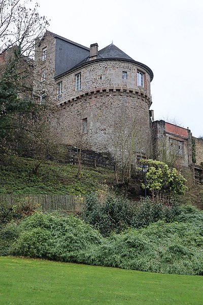 La tour Desnos est une tour médiévale de Fougères, intégrée à l'enceinte urbaine du bourg-neuf sur les remparts nord le long de la ruelle des Vaux, la rivière Nançon coulant en contrebas. La courtine était autrefois en partie protégée par l'ancien étang de Rillé ; la tour, située entre la tour Montfromery et l'emplacement de la tour Cardinale aujourd'hui disparue, participait avec la Porte de Rillé, détruite en 1775, à la défense du flanc nord du plateau où la ville s'est développée. Elle doit son nom à Colin Desnos, bourgeois de Fougères dont la maison jouxtait la portion de muraille sur laquelle l'ouvrage fut élevé au début du XVe siècle. Le rattachement de la Bretagne à la France rendant caduque sa fonction défensive, la tour fut ensuite convertie en prison accessible par la rue de la Prison, impasse donnant sur la rue du Bourg Vieil, actuelle rue de la Pinterie. En 1787, le rez-de-chaussée, entouré de murs délimitant deux petites cours, comprenait des cachots de punition et trois pièces dont le logement du geôlier ; l'étage intermédiaire formait une vaste salle sombre sans destination précise et le dernier étage accueillait trois pièces et une chapelle, permettant d'isoler les détenus par sexe et par catégorie. Jugée exiguë et insalubre, elle fut remplacée par un nouvel établissement pénitentiaire construit à partir de 1829 à l'intersection de la rue de Laval et de la rue Pierre Mendès-France. Vendue à des particuliers, la tour fut intégrée à l'usine de chaussures Eugène Pacory fondée en 1863, entourée d'entrepôts et d'ateliers et utilisée comme dépôt de peausserie et bureaux, ce qui défigura l'ouvrage. Le déclin de l'industrie de la chaussure entraîna la destruction du site de production et le dégagement de la tour. Inscrite aux monuments historiques en 1926 et toujours propriété privée, la tour a été restaurée et sert aujourd'hui d'habitation. Architectoniquement, il s'agit d'une tour d'artillerie en fer à cheval élevée sur trois étages, construite en moellons de cornéenne et de granite. Au rez-de-chaussée se trouve une porte moderne à linteau droit ; le sommet du second étage est orné de mâchicoulis formés de blocs de granite portés par des consoles à deux ressauts, et le troisième étage, légèrement en surplomb, est coiffé d'une toiture conique moderne. La tour avait été exhaussée à l'époque industrielle par un quatrième étage aujourd'hui supprimé, et des mâchicoulis subsistent à l'intérieur sur le mur d'adossement. Certaines archères ont été retaillées et transformées en canonnières pour s'adapter aux progrès de l'artillerie. Des plans et élévations de la tour sont consultables en ligne aux Archives départementales d'Ille-et-Vilaine (cote C120) et sur le portail Glad ; parmi les monuments et éléments liés à Fougères figurent la Porte Notre-Dame, la tour du Four, la tour Montfromery, la tour Nichot, la tour du Papegaud, la tour du Ravelin, la tour Saint-Nicolas et la liste des monuments historiques de Fougères.