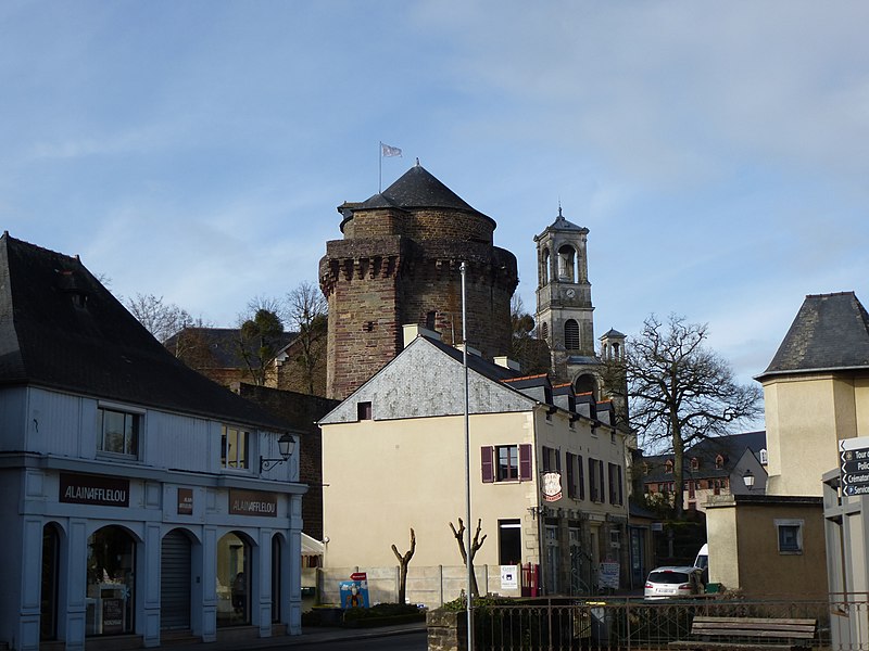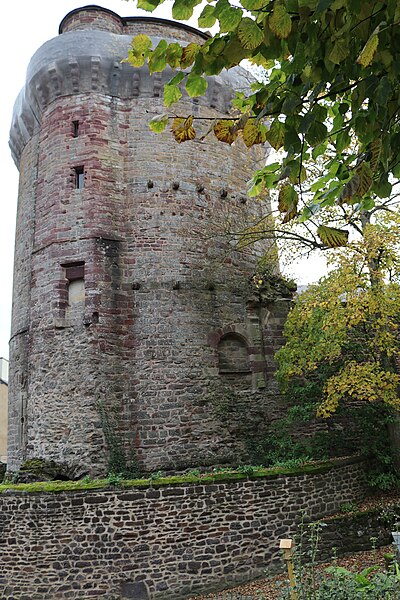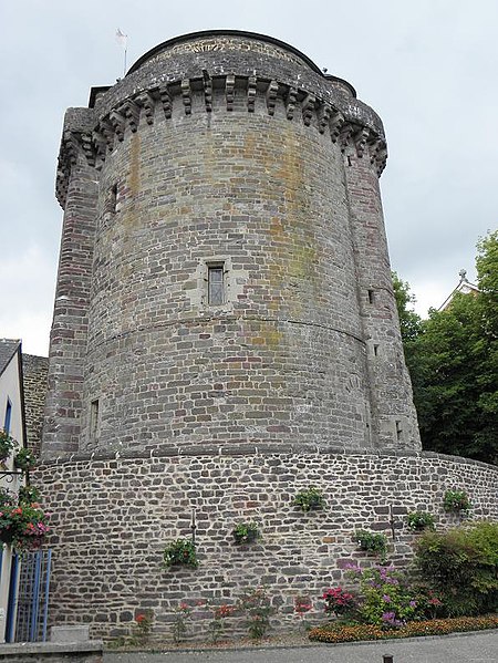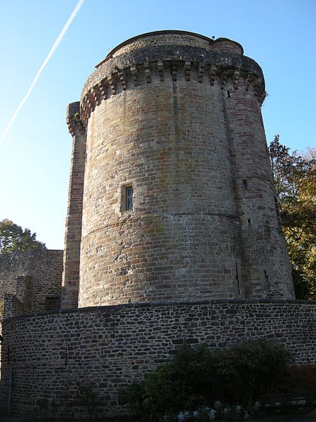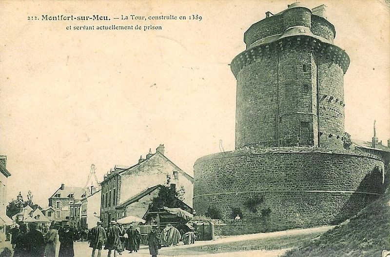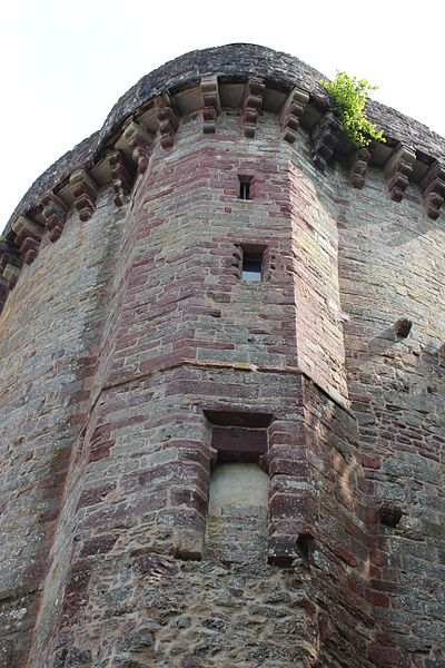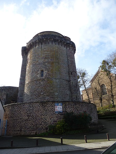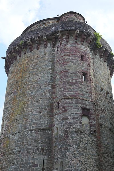 La tour du Papegault, dite aussi tour du château ou ancien donjon, est le seul vestige du château de Montfort-sur-Meu, en Ille-et-Vilaine, en Bretagne. Elle se situe dans le bourg, rue de Hennau, à proximité de l'église Saint-Louis-Marie-Grignion-de-Montfort et de la rivière Garun, affluent du Meu. Son nom provient du jeu du « tir au papegai », consistant à abattre un oiseau de carton perché au sommet de la tour ; ce concours, réservé à la milice bourgeoise, fut officialisé en 1482 et supprimé en 1770. Le château primitif remontait au XIe siècle ; il fut reconstruit entre 1376 et 1389 après sa reprise aux Anglais par Raoul VIII de Bretagne, et les murs de l'enceinte furent refaits de 1440 à 1480. La tour, datée de 1389, a survécu à la destruction partielle du château ordonnée en 1627 par Richelieu. Accostée de deux tourelles — l'une carrée abritant des latrines, l'autre polygonale contenant l'escalier — elle a servi de prison et a accueilli l'écomusée du pays de Brocéliande de 1984 à 2015. L'édifice est inscrit au titre des monuments historiques depuis le 5 novembre 1926. De plan massif, il comprend un sous-sol, un rez-de-chaussée et trois étages ; les deux salles basses sont circulaires tandis que celles des étages sont octogonales. Le dernier étage, en retrait, domine une couronne de mâchicoulis à quatre ressauts qui soutenait autrefois un chemin de ronde. La tour illustre l'évolution architecturale et défensive du site médiéval et constitue l'élément le plus visible de l'ancienne forteresse.