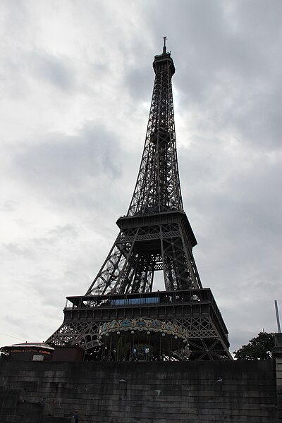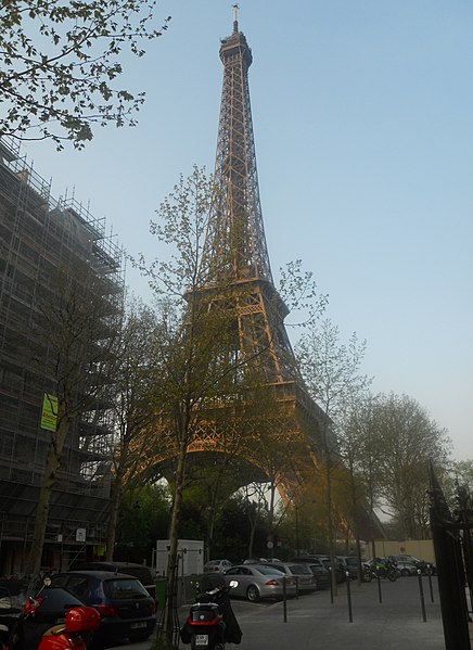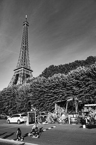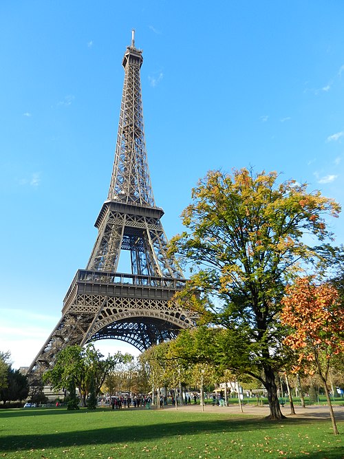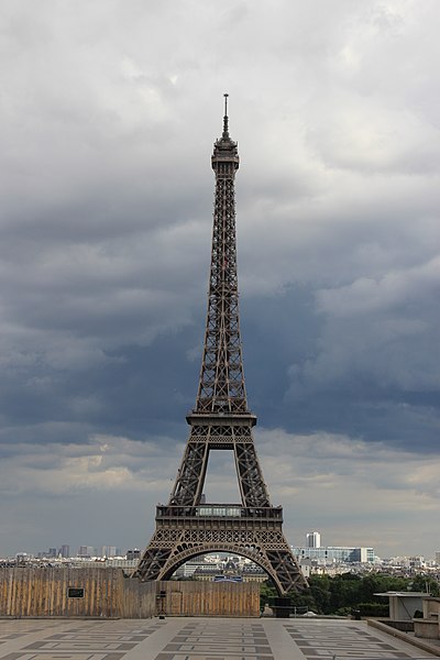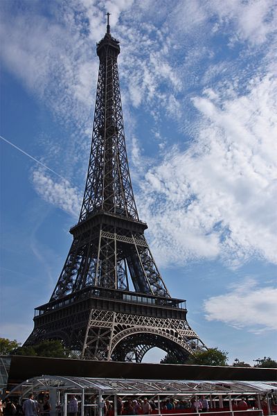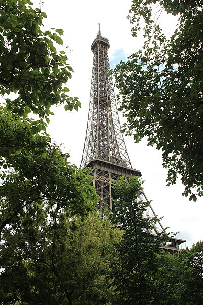 La tour Eiffel, tour en fer puddlé culminant à 330 mètres avec ses antennes, se dresse au nord‑ouest du parc du Champ‑de‑Mars, en bordure de la Seine, dans le 7e arrondissement de Paris ; son adresse officielle est 5, avenue Anatole‑France. Conçue à l’origine par Maurice Koechlin et Émile Nouguier, enrichie sur le plan esthétique par Stéphane Sauvestre et réalisée par Gustave Eiffel et ses collaborateurs pour l’Exposition universelle de 1889, la structure fut montée en deux ans, deux mois et cinq jours par quelque 250 ouvriers. Présentée alors comme la « tour de 300 mètres » et destinée à célébrer le centenaire de la Révolution française, elle est devenue le symbole de Paris et un site touristique majeur, attirant aujourd’hui plus de six millions de visiteurs par an et plus de 300 millions depuis son ouverture. Haute de 312 mètres à l’origine, elle resta la plus haute construction mondiale pendant quarante ans et sa hauteur a été augmentée à plusieurs reprises par l’installation d’antennes, pour atteindre 330 mètres en 2022.