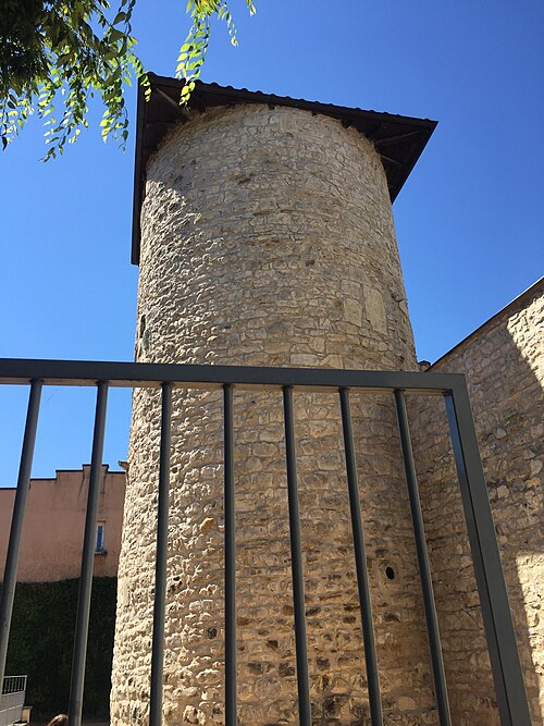 Façades et toitures de la tour avec les restes des remparts attenants (cad. AH 270) : inscription par arrêté du 30 avril 1982