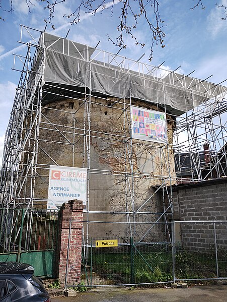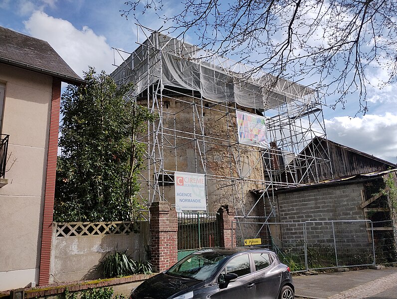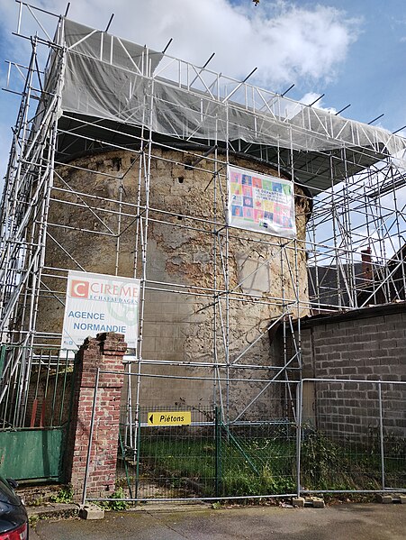 La tour Lambert est un édifice médiéval situé 19B quai des Remparts à Lisieux (Calvados), dont le nom se rattache au manoir Lambert. Elle constitue l'une des deux tours médiévales encore visibles en ville ; un fragment de l'enceinte du Bas-Empire romain, conservé près de la cathédrale, est le dernier autre vestige des anciennes fortifications. Lisieux possédait une enceinte antique d'environ huit hectares, partiellement détruite au XIe siècle puis reconstruite au siècle suivant ; la ville a été incendiée en 1136 et s'est ensuite étendue au-delà de ses murs antiques. Un Fort dit L'Évêque fut édifié dans la seconde moitié du XIVe siècle autour de la cathédrale, et la construction d'une nouvelle enceinte médiévale intégrant les faubourgs fut décidée en 1407, engagée au moment de la prise de la Normandie et restée inachevée lors de la reprise de la ville en 1449. Au XVe siècle la ville était entourée d'une enceinte bordée de douves, flanquée d'une quinzaine à une vingtaine de tours et percée de quatre portes. Les premières destructions du rempart datent du dernier quart du XVIIe siècle dans le secteur du jardin public de l'évêché, puis les portes ont été démantelées entre la fin du XVIIIe siècle et le début du XIXe siècle. La tour Lambert est datée de 1491 et restaurée en 1587 ; son architecte est nommé Guillemot Samaison. Inscrite au titre des monuments historiques par arrêté du 19 mai 1927, la tour a longtemps été en propriété privée et peu entretenue. La ville de Lisieux a acquis l'édifice en novembre 2021 pour 40 000 €, tout en n'ayant pas encore défini sa destination définitive, une utilisation pour des expositions temporaires étant envisagée. Des travaux ont été engagés au printemps 2024, motivés par des désordres causés notamment par des infiltrations d'eau. La salle basse voûtée, qui porte les armoiries de la ville, a été dégagée en mars 2024 après avoir été comblée de terre et de gravats. Un tunnel a été excavé le 26 mars 2024 et, en mai 2024, quatre galeries ont été identifiées dont les fonctions restent méconnues. En avril 2024 la tour a fait l'objet d'une étude d'orthophotographie et d'un scan par drone pour documenter sa construction.