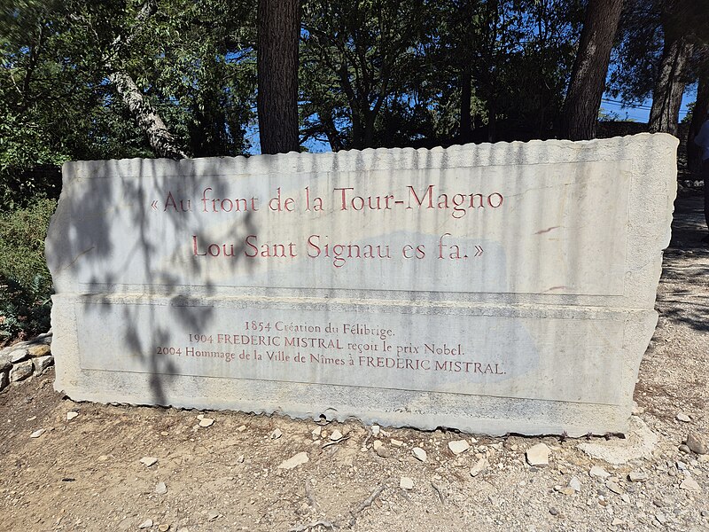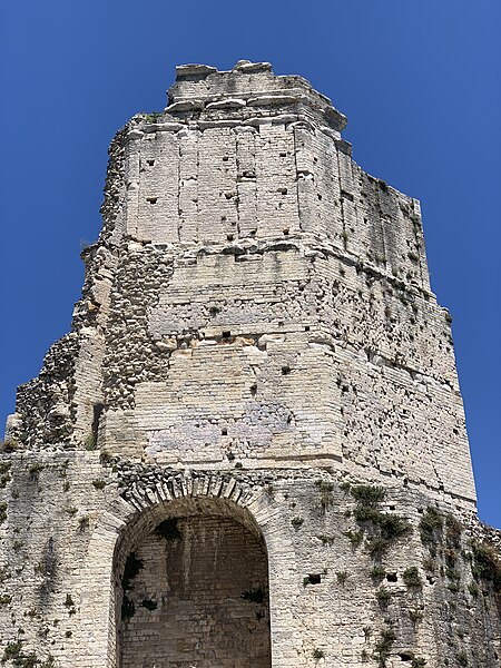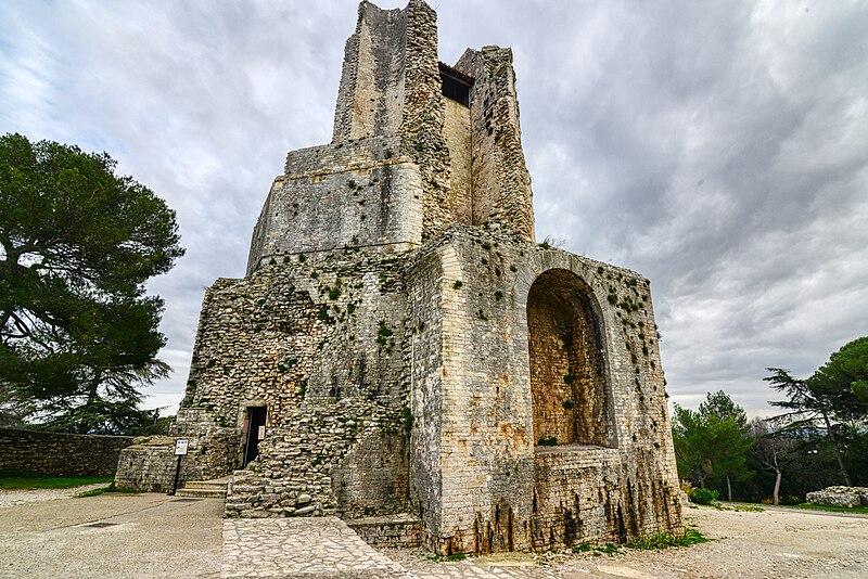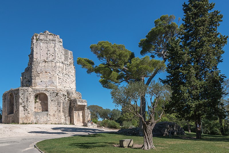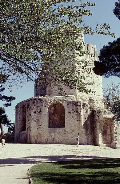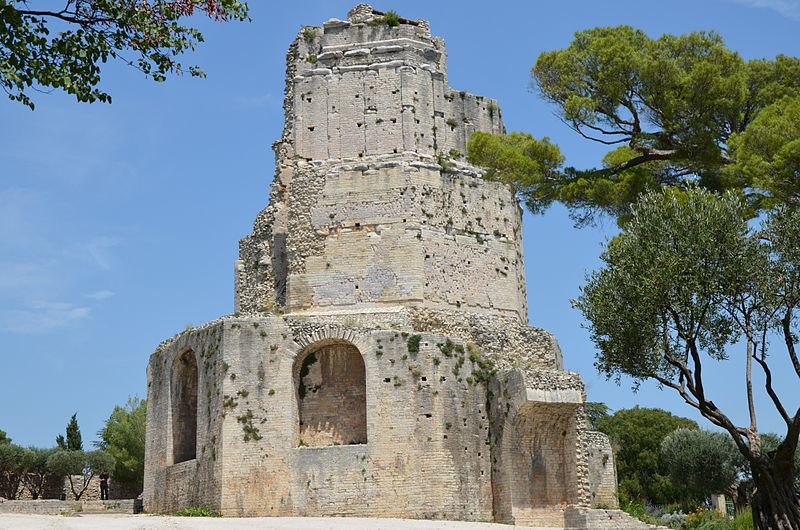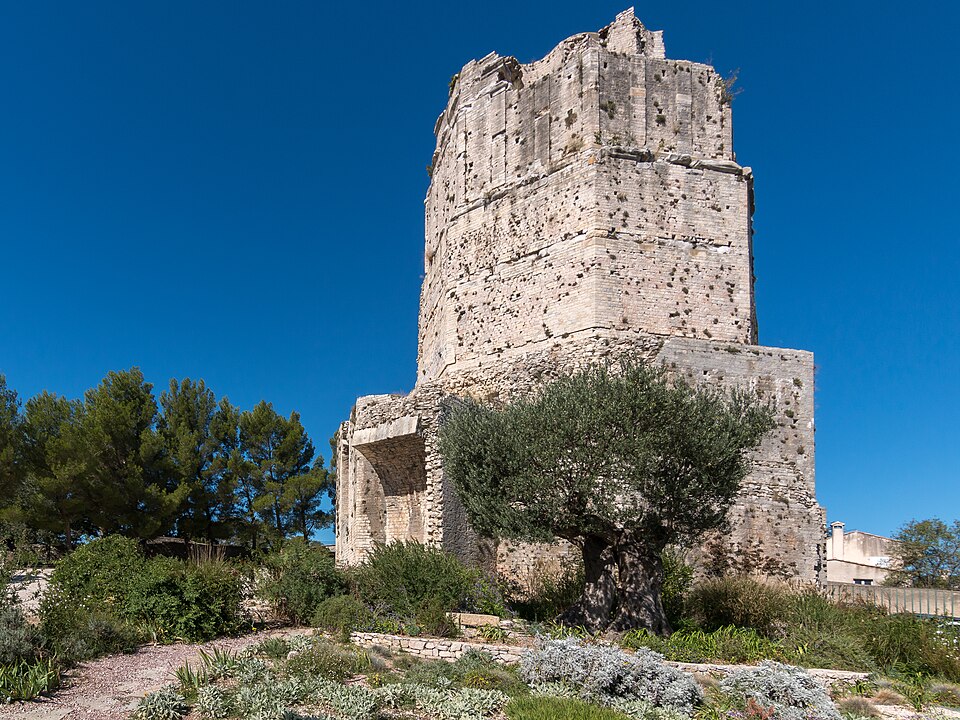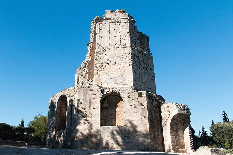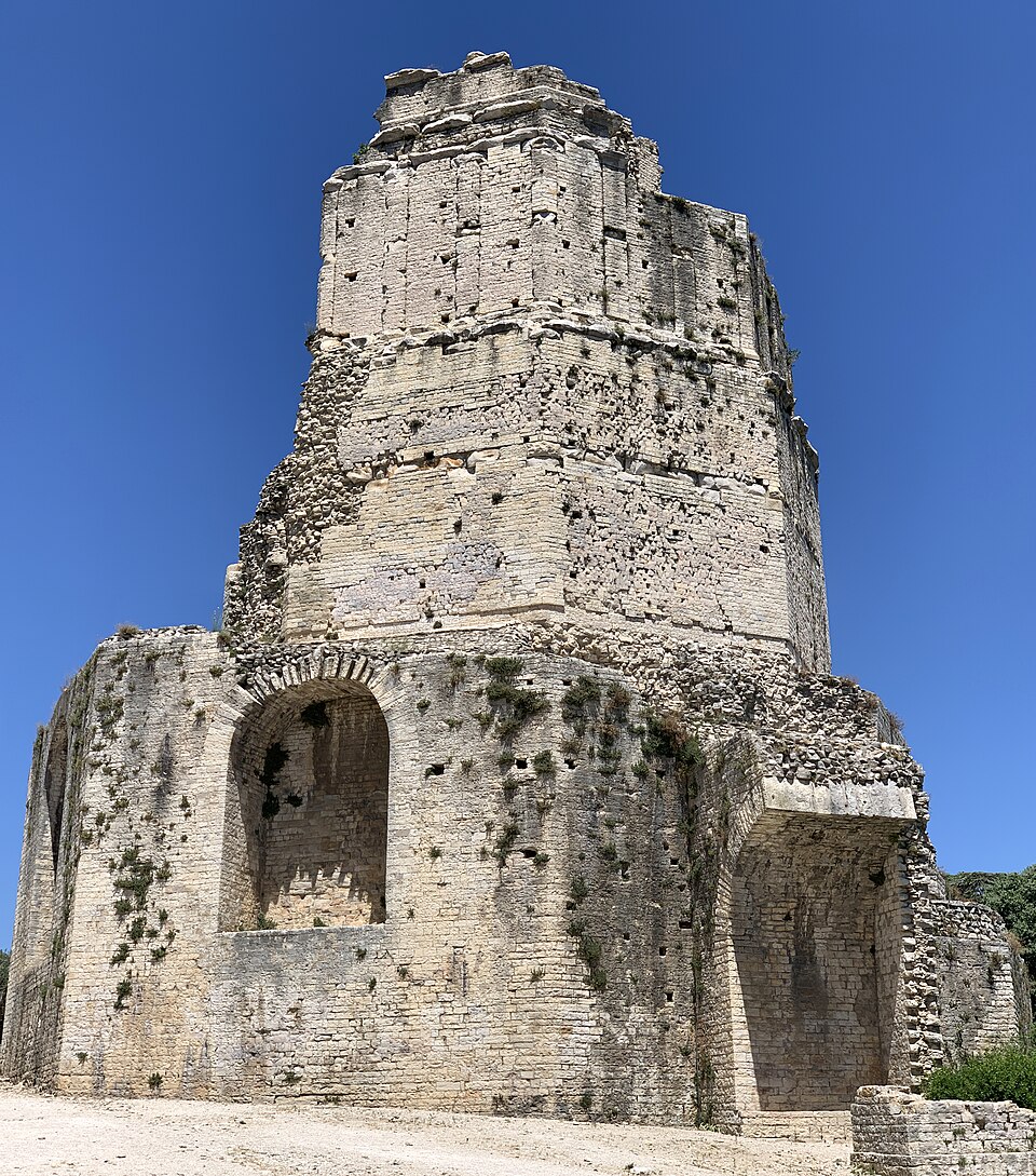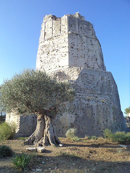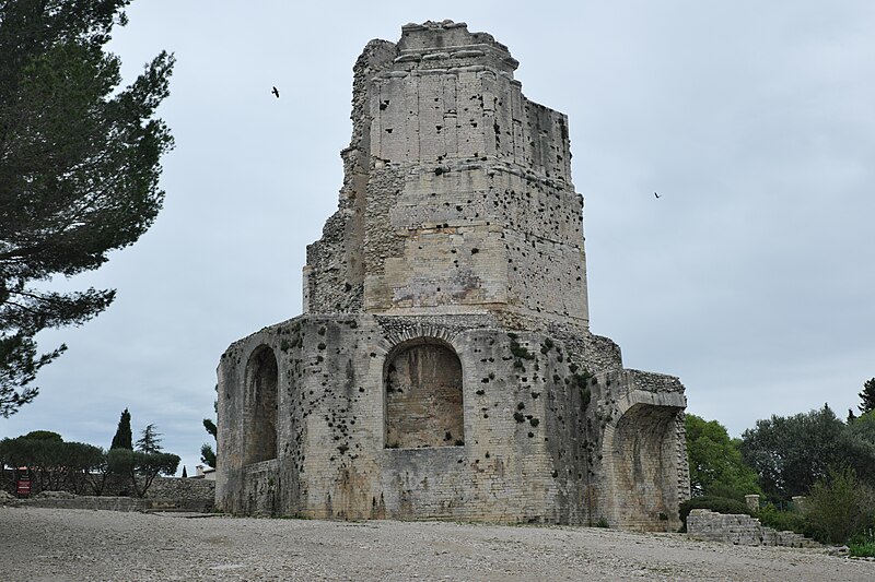 La Tour Magne, située sur le mont Cavalier à Nîmes, domine les Jardins de la Fontaine et constitue le plus imposant vestige de l'enceinte romaine de la ville. Dès la fondation de Nîmes, en -27, une enceinte d'environ 6 km, couvrant près de 220 ha, fut édifiée ; sa courtine, épaisse de 2,10 m et haute de plus de 8 m, ponctuée de tours et de portes monumentales, suit la topographie en occupant les crêtes et les points dominants. Au-delà de sa fonction défensive, cette muraille jouait également un rôle de prestige à forte signification idéologique à l'époque impériale. Installée sur la colline la plus élevée et visible de loin, la Tour Magne a fait l'objet de diverses interprétations : trophée de Domitius Ahenobarbus, imitation du phare d'Alexandrie ou tour d'observation et de signalement selon Léon Ménard. En 1601, François Traucat, autorisé par le roi Henri IV, creusa l'intérieur à la recherche d'un trésor et le vida, révélant un blocage que les archéologues modernes ont reconnu comme la maçonnerie d'une tour préromaine antérieure. Cette tour préromaine s'inscrit dans une série caractéristique d'architecture défensive protohistorique, comparable, quoique moins spectaculaire, à des exemples d'oppida voisins comme Nages ou Ambrussum. Point fort de la fortification indigène, elle dominait et signalait le sanctuaire de source dédié à Nemausus. L'édifice pré-romain fut transformé à l'époque d'Auguste pour devenir la Tour Magne telle que les Romains l'ont intégrée à l'enceinte. La tour mesurait 18 m à la fin du IIIe siècle av. J.-C., atteignit 36 m à l'époque romaine et ne culmine aujourd'hui qu'à 32,50 m. Thomas Platter la remarqua déjà évidée en 1596. Elle repose sur un soubassement octogonal dont l'irrégularité traduit la forme de la tour en pierre sèche qu'il englobe, visible encore à l'intérieur en négatif. Une rampe coudée de 70 m, dont subsistent le départ au sud et une partie de la dernière arche, conduisait au chemin de ronde du premier niveau, qui permettait de rejoindre le chemin de ronde de la courtine au nord et à l'ouest. Au-dessus de cet étage intégré à l'enceinte, la tour polygonale est aveugle ; l'accès à la terrasse se faisait par un escalier intérieur de 132 marches. Les deux derniers niveaux étaient ornés : l'un de pilastres toscans, l'autre, aujourd'hui presque disparu, de colonnes. Sa fonction a donné lieu à de nombreuses hypothèses ; reliée à la muraille, elle pouvait assurer la défense et servir de tour de guet ou de signalisation, et sa hauteur doublée tenait aussi lieu de manifestation de la puissance romaine. La Tour Magne fait l'objet d'un classement parmi les monuments historiques par la liste de 1840 et est aujourd'hui gérée en délégation de service public par la société Edeis Romanité. Principalement accessible depuis les Jardins de la Fontaine, elle est ouverte tous les jours et un billet à tarif préférentiel permet de visiter les Arènes et la Maison carrée. Des documents en braille et en gros caractères, des plans thermoformés sur demande, des boucles d'induction magnétique et une tablette proposant une visite filmée sont proposés aux visiteurs ; la tour comporte toutefois 140 marches et n'est pas accessible aux personnes en fauteuil. La Tour Magne a aussi inspiré des écrivains et des poètes : les vers holorimes de Marc Monnier lui sont consacrés, elle apparaît dans le poème "Guitare" de Victor Hugo repris par Georges Brassens, et elle est évoquée dans les Poèmes à Lou de Guillaume Apollinaire.