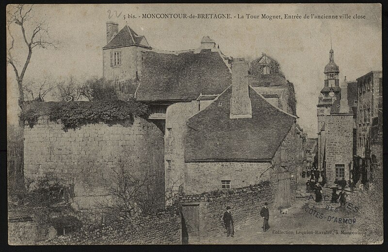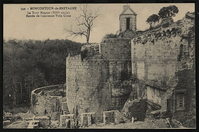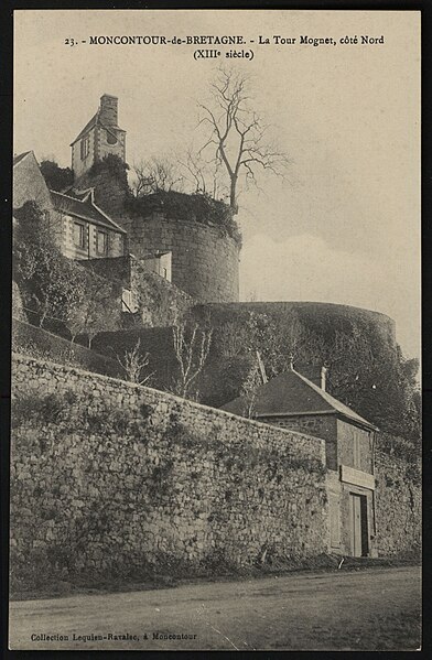 La Tour Mognet s’inscrit dans une place forte d’origine ancienne, connue sous diverses appellations : Castrum Moncontorium, Mons Consularis, Mons Contoris et Moncontour. Le tracé de l’enceinte actuelle remonte aux XIe et XIIe siècles, mais l’origine de la forteresse est antérieure. L’ouvrage a subi d’importants travaux au XIVe siècle, suivis de plusieurs interventions ultérieures. La tour de l’ouest date du XIIIe ou du XIVe siècle ; la Tour Mognet, en partie assise sur cette tour, date de 1400. À l’origine, l’enceinte ne comportait qu’une porte pour les véhicules. À la fin du XIVe siècle, une porte flanquée d’une tour fut ouverte, comportant deux passages distincts pour piétons et voitures. La tour, d’environ dix mètres de diamètre, est le point d’où partait la muraille qui la reliait autrefois au donjon.