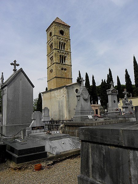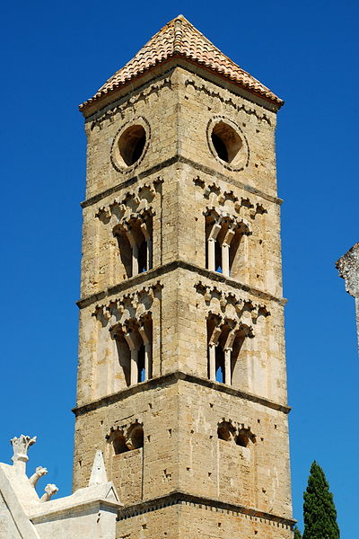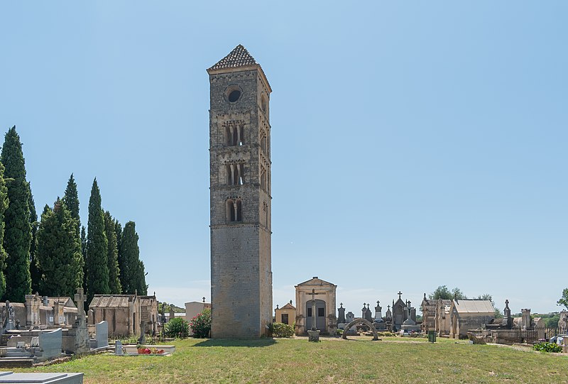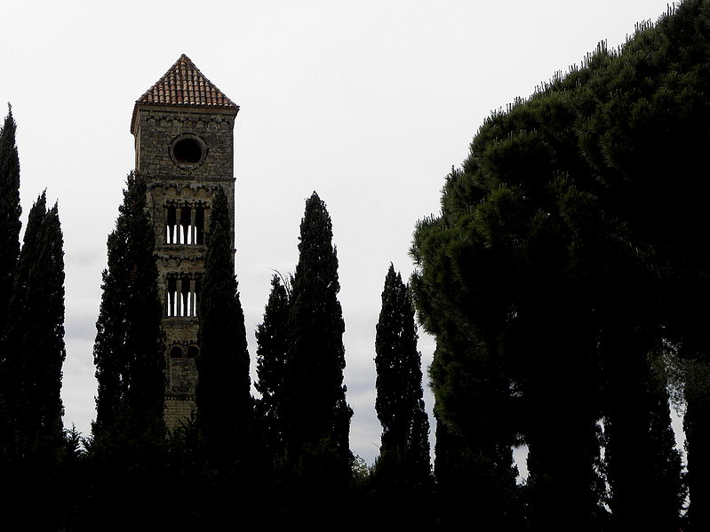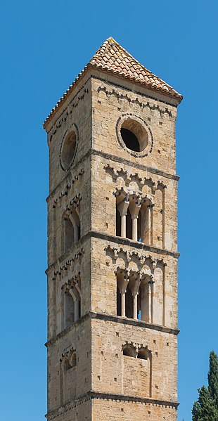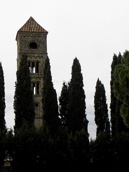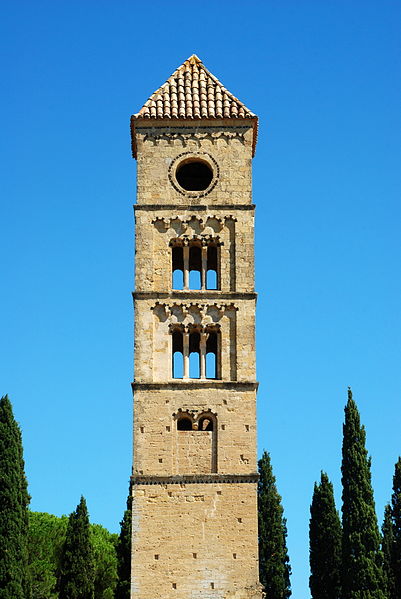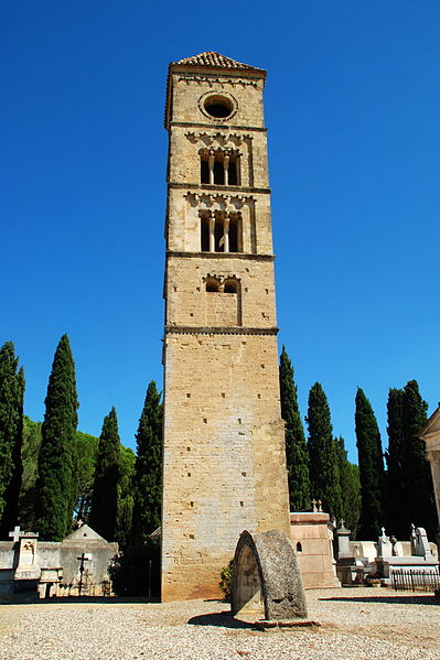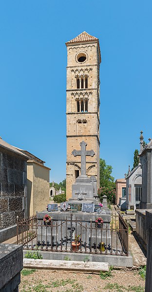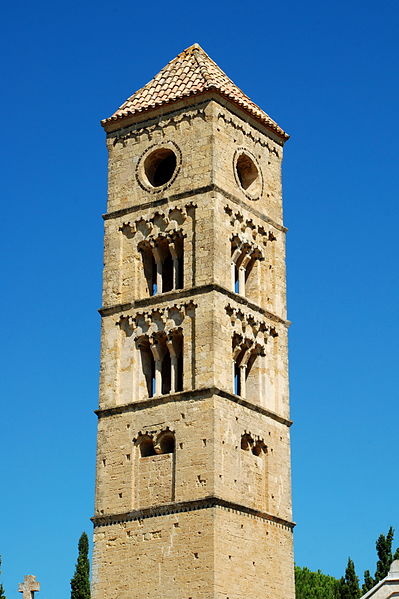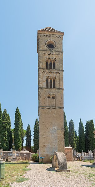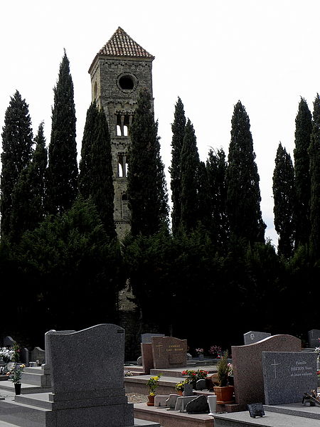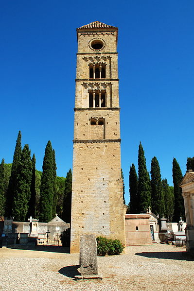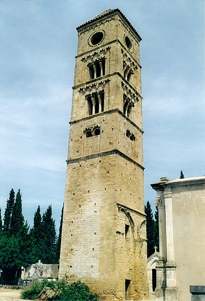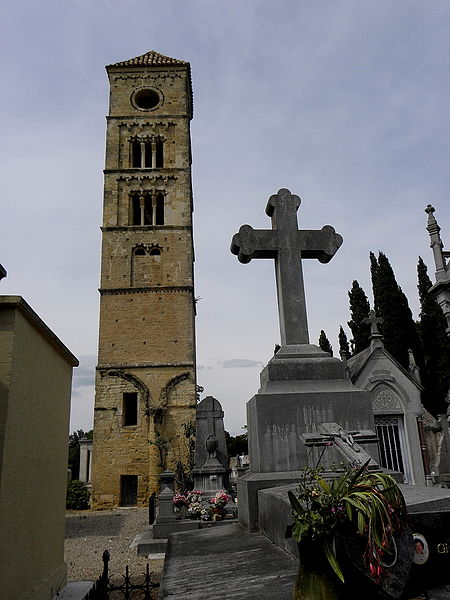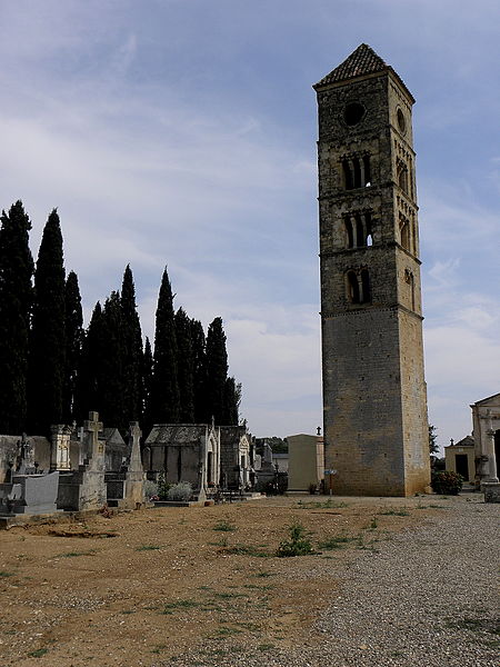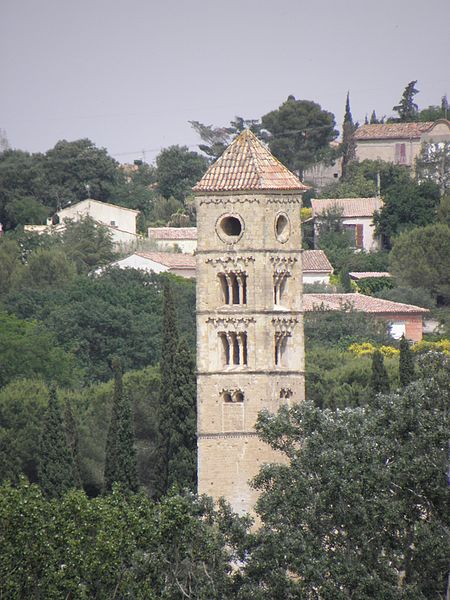 La tour romane de Puissalicon est un clocher de style roman lombard situé dans l'Hérault, en Occitanie, près du village de Puissalicon. Elle se dresse dans l'enceinte du cimetière communal, à environ 1 km à l'ouest du village, sur la route de Puimisson, non loin du Libron. De plan rectangulaire, la tour fut d'abord édifiée isolée avant d'être accolée à l'église du prieuré. Un petit prieuré bénédictin dépendant de l'abbaye de Villemagne-l'Argentière y fut implanté et la tour devint le clocher de l'église appelée Beati Stephano de Pedano ou Saint-Étienne-de-Pézan. Les moines avaient abandonné l'église avant 1232, comme l'atteste un acte de cette année prescrivant au recteur de Puissalicon d'y dire la messe les dimanches et jours de fête. Le prieuré fut détruit pendant les guerres de Religion et le terrain entourant la tour devint cimetière après la Révolution française. La tour est classée au titre des monuments historiques depuis 1862. Construite en pierre de taille rehaussée d'incrustations en basalte, elle présente un décor où le basalte souligne les baies par une alternance de cubes de lave et de blocs de calcaire. La maçonnerie montre à certains endroits, notamment à la base, des traces d'opus monspeliensis. Haute de 26 mètres et large de 4,30 mètres, elle comprend plusieurs niveaux séparés par des cordons de pierre et est couverte d'un toit de tuiles rouges. Le rez-de-chaussée, aveugle, porte encore les marques de l'église gothique aujourd'hui disparue qui lui était accolée. Au-dessus, un étage aveugle est couronné d'une frise de dents de scie en basalte. Un autre niveau présente des baies géminées partiellement murées dont les claveaux alternent pierre brune et basalte noir. Les niveaux supérieurs sont ornés de fenêtres triples à double ébrasement, inscrites dans des bandes lombardes et flanquées de colonnes à chapiteaux géométriques; les arcs et les arcatures conservent là encore des claveaux alternant bruns et noirs. Chaque face du dernier étage est percée d'un grand oculus entouré d'un cordon de basalte, surmonté d'une frise de sept arcatures dite Cordon de Charlemagne et d'une frise de dents d'engrenage en basalte. Les murs portent de nombreux trous de boulin témoignant des échafaudages. Il reste peu de l'église du prieuré: à l'ouest de la tour, entre celle-ci et l'entrée du cimetière, subsiste un fragment d'arc ogival du XIIe siècle orné de moulures et de pointes-de-diamant. Au rez-de-chaussée de la face sud, qui était accolée à l'église, on observe une colonne engagée, un chapiteau massif et le départ de deux arcs en plein cintre moulurés.