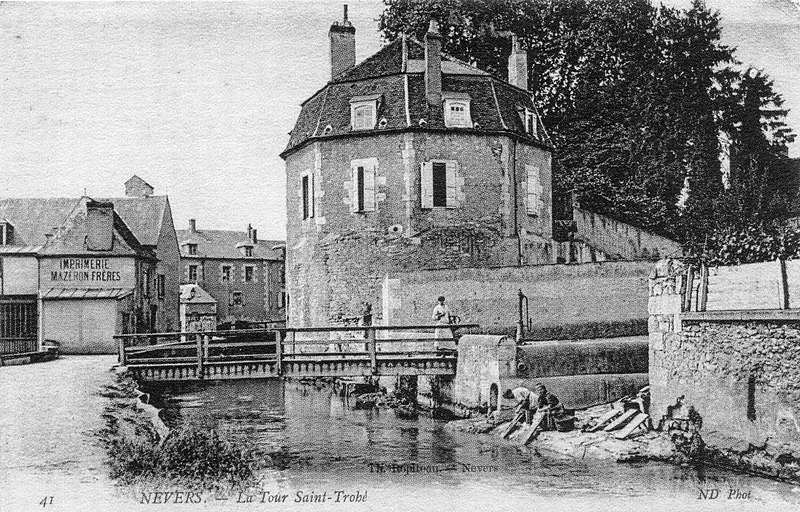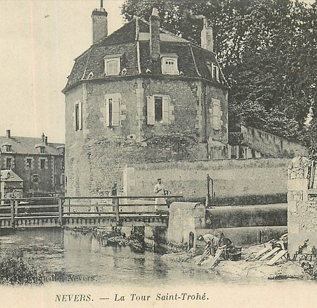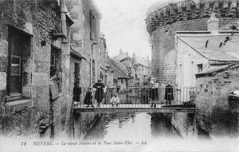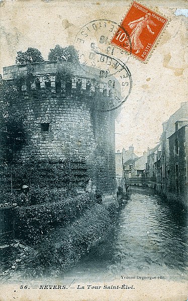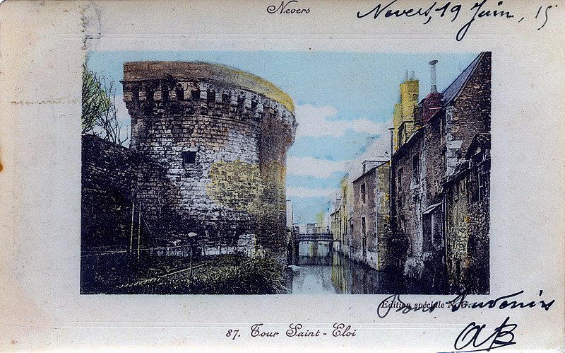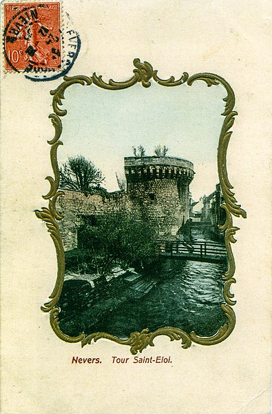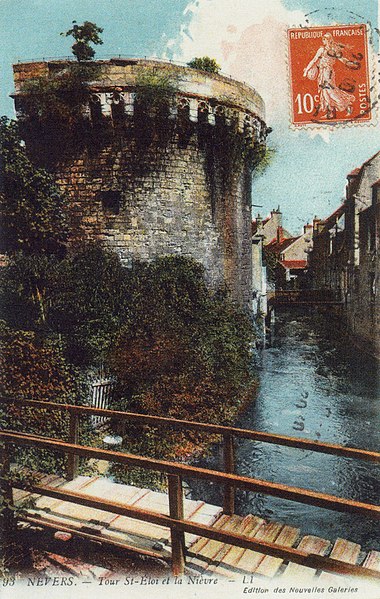 La tour Saint-Éloi, vestige des anciens remparts de Nevers, est située sur le boulevard Pierre de Coubertin. Elle fait partie des tours médiévales de la ville. Sa silhouette en arc de triomphe, unique dans le département de la Nièvre, relève d'une facture classique inspirée du style antique. La porte qu'elle constitue met la ville en valeur et n'est plus liée aux fonctions défensives ou fiscales. Son décor sculpté, détruit pendant la Révolution, comportait des attributs de la justice et des trophées militaires sur deux piliers surmontés de l'écusson du duc et de celui de la ville ; le couronnement représentait un écu royal soutenu par deux génies et encadré de drapeaux et de canons. Pour compléter cette notice, on peut consulter la liste des monuments historiques de la Nièvre et la base Mérimée, ainsi que les portails consacrés aux monuments historiques et à la Nièvre.