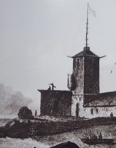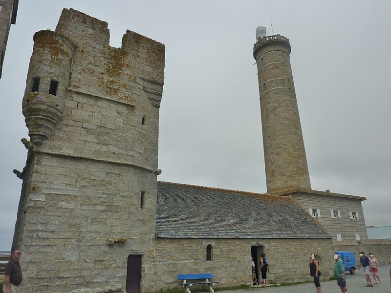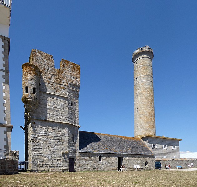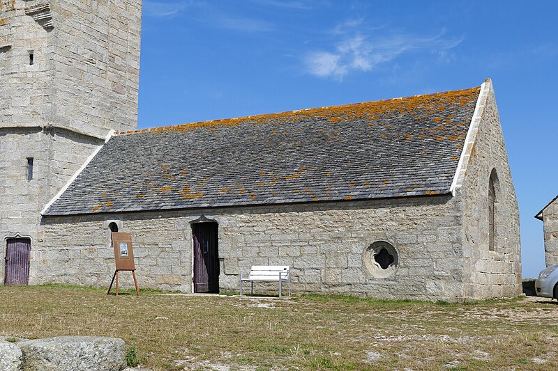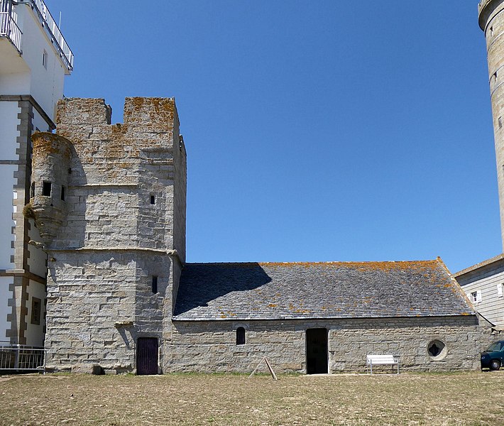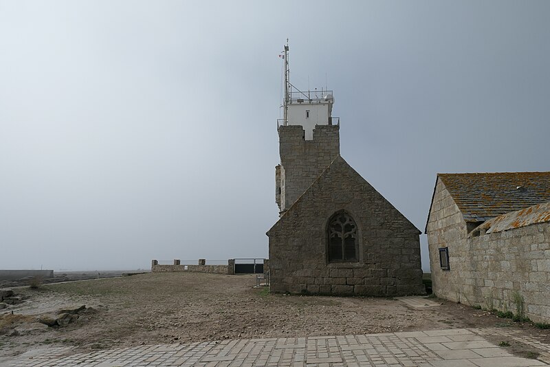 La chapelle remonte au début du XVIe siècle et est surmontée d'une tour plus ancienne, partiellement arasée à la fin du XVIIIe siècle pour servir de tour à feu pendant la construction du premier phare. Vers 1792, l'église fut raccourcie de moitié pour permettre l'édification de l'ancien phare. La tour, qui assurait à la fois des fonctions défensives et de clocher, présente un angle retranché par un pan sur les deux tiers de sa hauteur. À l'angle sud‑ouest s'appuie une tourelle, terminée en cul‑de‑lampe et percée de cinq meurtrières. Sous cette meurtrière, ainsi qu'aux angles nord‑est et nord‑ouest, figurent des sculptures allégoriques d'hommes et d'animaux. À partir de 1830, le clocher fut employé comme tour à feu.