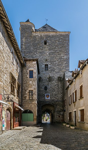 La porte de ville carrée se situe sur la commune de Villeneuve, dans le département de l'Aveyron. Un bail à prix-fait daté du 12 août 1486 atteste la construction d'une tour appelée « d'Amont sive d'En Talhada » : les consuls de Villeneuve y contractent avec les « peyriers » Estene Servan et Alric Lacam. Il est indiqué qu'une partie de la porte antérieure a peut‑être été conservée. La tour Soubirane est mentionnée comme porte de ville à Villeneuve. L'édifice a été inscrit au titre des monuments historiques en 1928. La porte est documentée dans la base Mérimée et illustrée sur Wikimedia Commons ; elle figure également dans les portails consacrés à l'Aveyron et aux monuments historiques.