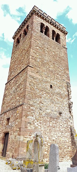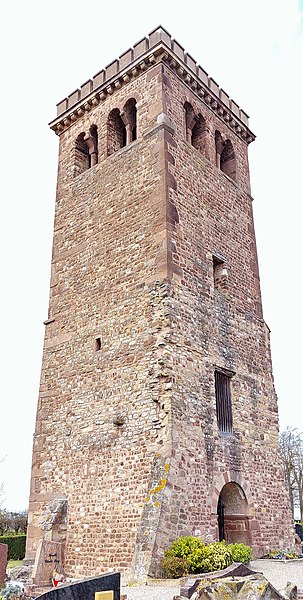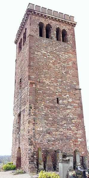 La tour du Gloeckelsberg, située sur la colline de Blaesheim (198 m) et accessible par la rue de la Montagne, est un monument historique du Bas-Rhin classé depuis 1898. Elle est le seul vestige de l'ancienne église paroissiale Saint-Blaise, d'origine XIIe siècle : l'église fut détruite au cours de la guerre de Trente Ans et la nef et le chœur ont été démolis en 1833. De plan roman, la tour était adossée à une nef d'environ 24 mètres de long sur 16 mètres de large. Elle conserve un linteau très ancien, aujourd'hui martelé, qui portait un relief peut‑être représentant un agneau mystique, et la clé de l'arc en plein cintre ouvrant sur la nef représente deux personnages nus. La toiture de la tour a été remaniée dans les années 1870, la couverture ayant été remplacée par une terrasse crénelée en brique sous laquelle s'ouvrent des baies géminées. Quatre chapiteaux et trois bases provenant de la nef sont déposés au musée de l'Oeuvre Notre‑Dame à Strasbourg ; les chapiteaux, sculptés d'animaux monstrueux, de sirènes, de palmettes et d'arbres stylisés, sont datés des années 1100. Des colonnes auraient été remployées dans la mairie de Blaesheim. Le site a été, au moment de la christianisation de la région, un haut lieu du paganisme romain.