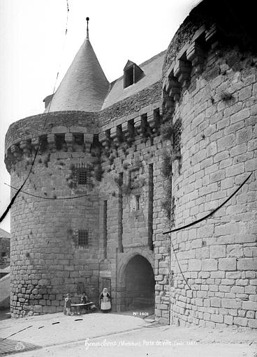La Porte-prison, anciennement porte de Broérech, et les tours Bro-Erec'h forment le cœur historique d'Hennebont, proche de la basilique Notre-Dame-de-Paradis. Ouvrant les remparts de la ville close, l'ouvrage se compose d'une porte flanquée de deux grosses tours dont la partie supérieure a été remaniée au-dessus des mâchicoulis. Les tours et leurs remparts furent édifiés dans la seconde moitié du XIIIe siècle par le duc de Bretagne Jean Ier le Roux. Elles subirent plusieurs sièges au début de la guerre de Cent Ans, notamment en 1342 pendant la guerre de succession de Bretagne (épisode de Jeanne la Flamme). Dès la fin du XVIe siècle, elles perdirent progressivement leur rôle défensif : les fossés furent comblés et des constructions apparurent hors des murs. À partir de 1644, les tours servirent de prison et accueillirent leurs premiers prisonniers, 46 Espagnols. La « brigande » Marion du Faouët y aurait été enfermée en 1746; son amant Hanvigen, arrêté puis emprisonné en 1743, figure aussi parmi les détenus; Marion réussit à soudoyer le geôlier Pierre Le Livec afin de permettre l'évasion de son amant et de ses complices. Un document de 1791 indique que la prison pouvait contenir 199 personnes au total, dont sept dans chacun des deux cachots. Dans les années 1810, l'Empire y envoya des bagnards venus de Brest pour creuser le canal du Blavet; la prison devint ensuite un centre de transfert pour des détenus de droit commun. L'usage carcéral déclina ensuite et, à partir de 1910, les tours furent transformées en musée et largement restaurées. Les tours sont classées au titre des monuments historiques depuis le 10 juin 1916. Le musée présente la culture bretonne du Néolithique à la Seconde Guerre mondiale et retrace l'histoire de la ville d'Hennebont. Ce petit musée, qui avait brûlé en 1944 lors du bombardement de la ville, expose des costumes bretons, de la faïence de Quimper et des objets médiévaux ; le mobilier en bois actuel ainsi que les vêtements proviennent d'acquisitions récentes. Parmi les pièces présentées figurent des buffets et vaisseliers ainsi que des meubles domestiques tels que lit-clos, banc-coffre, bancs et berceaux.