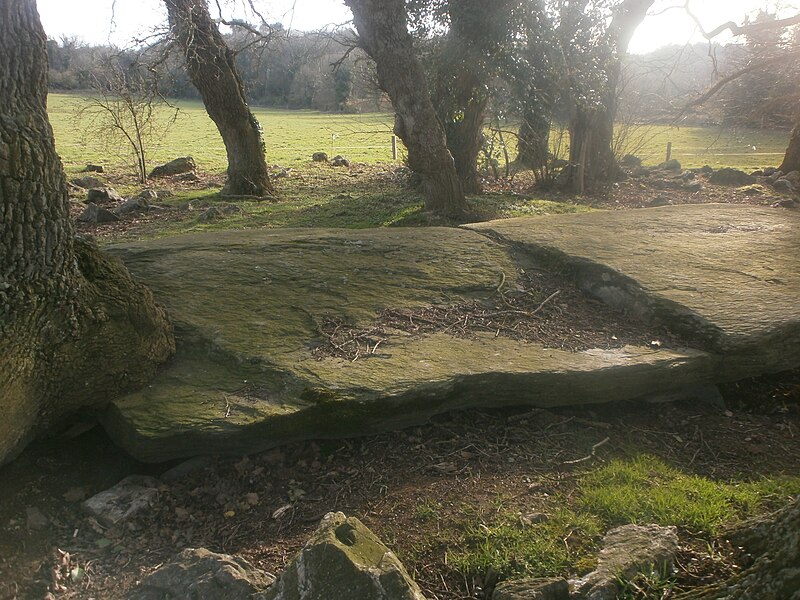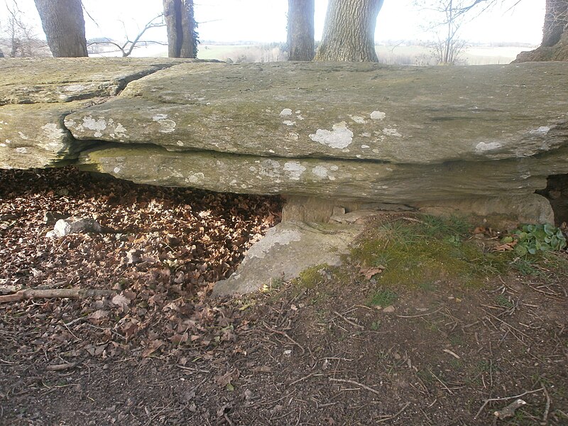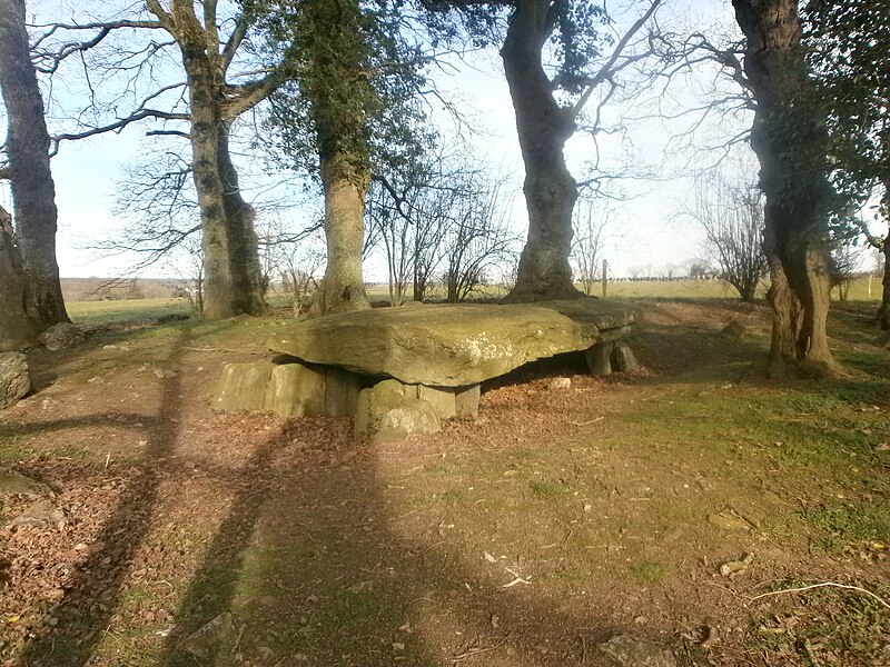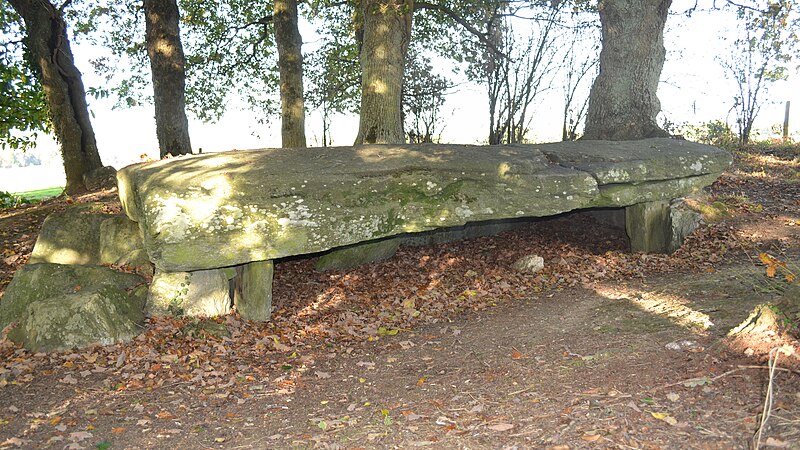 Le dolmen de la Maison Trouvée (ou Trouée), appelé aussi dolmen de la Ville au Voyer, se situe dans la commune déléguée de La Chapelle-Caro, commune de Val-d'Oust, dans le Morbihan en Bretagne. Il est mentionné dès le début du XIXe siècle par l'abbé Mahé (1825), Cayot-Delandre (1847) et Rozensweig (1863) et l'édifice est classé au titre des monuments historiques depuis le 28 août 1934. Selon Jean L'Helgouach, son architecture correspond à celle d'un dolmen angevin. Orienté sensiblement est-ouest, il est inclus dans un tertre circulaire d'environ un mètre de hauteur, délimité par un péristalithe irrégulier d'une douzaine de mètres de diamètre composé de blocs de quartz. La chambre sépulcrale, de forme rectangulaire, mesure 4,30 m de long sur 2 m de large ; tous les orthostates qui la délimitent sont doublés. Ils supportent une table de couverture imposante de 5,90 m de long sur 2,66 m de large et d'une épaisseur de 0,50 m. Le couloir d'accès, large d'un mètre, est bordé par deux petites dalles, dont l'une porte une feuillure laissant supposer l'existence antérieure d'une porte. Toutes les dalles du dolmen sont en schiste pourpre. Une légende locale rapporte que le monument était le repaire de créatures surnaturelles nommées Folliards, qui auraient l'habitude de se substituer aux nouveau-nés ; pour s'en protéger, il fallait jeter neuf belles pommes rouges dans un chaudron d'eau bouillante, ce qui faisait rentrer les Folliards chez eux. La bibliographie mentionne notamment des travaux de Jacques Briard, Philippe Gouézin et Anne-Louise Hamon, ainsi que des ressources en ligne et des portails consacrés au mégalithisme, aux monuments historiques et au Morbihan, et une notice illustrée est disponible sur Wikimedia Commons.