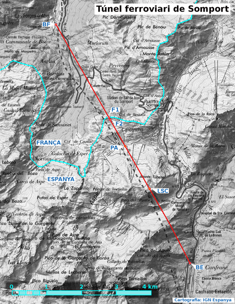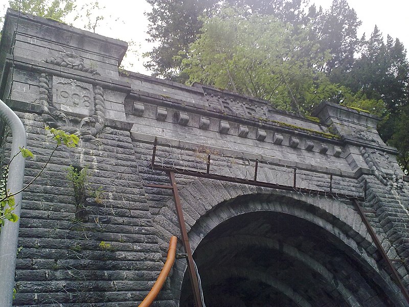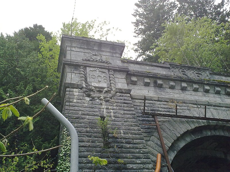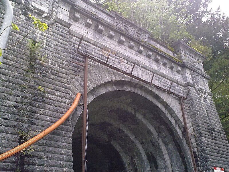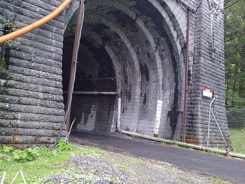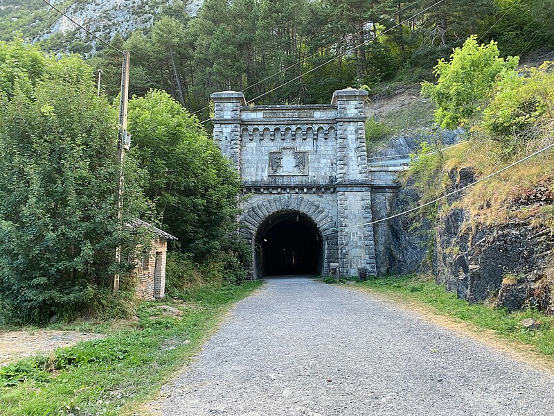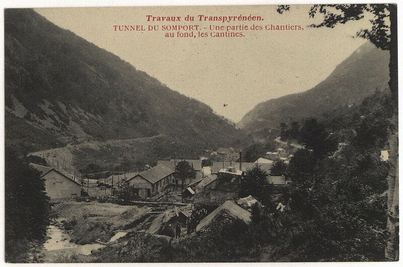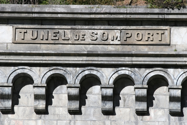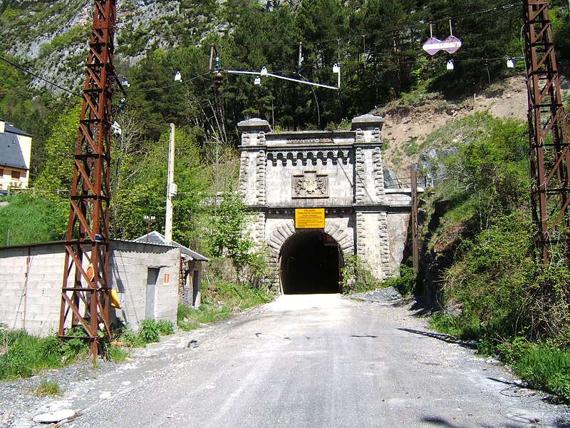 Le tunnel hélicoïdal de la ligne Pau-Canfranc, construit par la Compagnie du Midi entre 1909 et 1917, a été électrifié et mis en service en juillet 1928. La tête de tunnel est réalisée en moellons de calcaire hourdés au mortier de chaux. La circulation est interrompue depuis 1970.