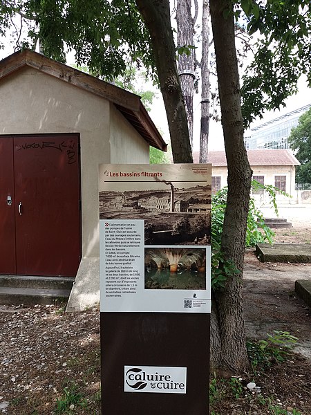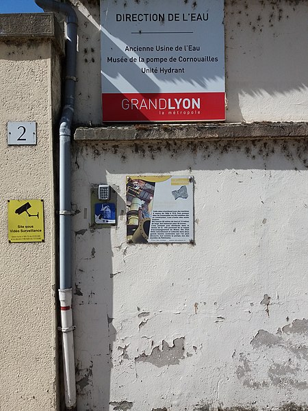 L'usine des eaux de Saint-Clair est une ancienne usine de pompage située sur la rive droite du Rhône, à Caluire-et-Cuire, dans la périphérie de Lyon. Construite en 1854 par l'ingénieur Aristide Dumont pour la Compagnie générale des eaux, elle alimentait en eau potable plusieurs quartiers de Lyon, notamment la Croix-Rousse, la Presqu'île, Vaise, Les Brotteaux et la Guillotière. L'ensemble de l'usine et du réseau de distribution fut mis en service dans les années 1856-1857. Trois pompes à vapeur de type Cornouailles, monumentales, assurèrent l'aspiration et le refoulement de l'eau du Rhône ; elles mesuraient 20 mètres de haut, 13 mètres de large et représentaient un poids total d'environ 200 tonnes, permettant une production de l'ordre de 20 000 m3 d'eau par jour. La machine conservée a été construite au Creusot par Schneider : l'ensemble s'étage sur 13 mètres de hauteur, le balancier en fonte a la forme d'une navette de 7 mètres de long et pèse 35 tonnes, il est calé par des poutres et relié d'un côté à la pompe et de l'autre à un piston de 1 mètre de diamètre ayant une course de 2,5 mètres. Cette machine développait une puissance de 175 chevaux, avec un rythme de 6 à 10 coups de piston par minute ; chaque coup refoulait 2 mètres cubes d'eau. La machine est en acier et ses coussinets sont en bronze. Les pompes à vapeur ont été utilisées jusqu'en 1910, puis remplacées par des pompes électriques ; plusieurs pompes et chaudières furent démontées dans les années 1930, deux exemplaires ayant été enlevés en 1938. Le site formait à l'origine un complexe comprenant de vastes bassins de service et de filtration souterrains — d'immenses caves voûtées soutenues par des piliers — destinés au captage, à la circulation et à la filtration des eaux du Rhône ; ces bassins ne sont plus utilisés depuis 1976 mais restent accessibles. Le bâtiment de l'usine, de dimensions modestes et de style néo-classique, présente un corps central à deux niveaux flanqué de deux ailes symétriques. Il ne subsiste aujourd'hui qu'une seule pompe de type Cornouailles, conservée sur place et présentée lors de visites guidées et des Journées européennes du patrimoine ; cet exemplaire est considéré comme le dernier témoin de ce type en France. Le bâtiment abritant la pompe et les bassins filtrants est inscrit au titre des monuments historiques depuis le 3 novembre 1988 et la machine de Cornouailles est classée depuis le 22 mars 1991. Une association locale, L'eau à Lyon et la pompe de Cornouailles, organise régulièrement des visites du site.