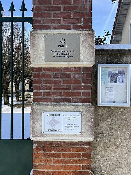 Bâtiment abritant les dispositifs techniques classés (cad. D 1158) : inscription par arrêté du 22 octobre 1987 ; Roues turbines Girard ; pompes aspirantes (cad. D 1158) : classement par arrêté du 12 juin 1992
