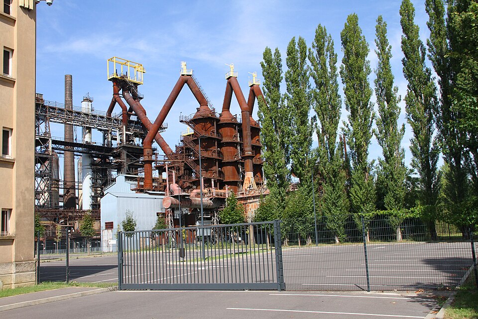 Le haut-fourneau U4 avec ses annexes : cowpers incluant la cheminée, halle de coulée, tuyauteries, portique de chargement, dispositifs d'épuration, bennes Staehler, wagon porte-bennes, rails de roulement, accumulateurs à matières ; les façades et toitures du bâtiment des compresseurs ; le bâtiment des soufflantes en totalité, y compris les machines ; les façades, toitures, hall d'entrée et grand escalier du bâtiment d'administration ; la sous-station électrique en totalité, avec les installations ; le bâtiment des chaudières, incluant les machines (cad. B 4589/356, 4590/356, 4591/356, 4592/356, 4593/356, 4594/356, 4595/356) : inscription par arrêté du 11 janvier 2001