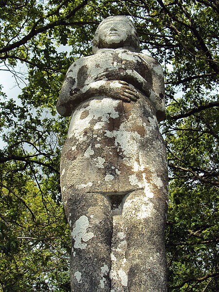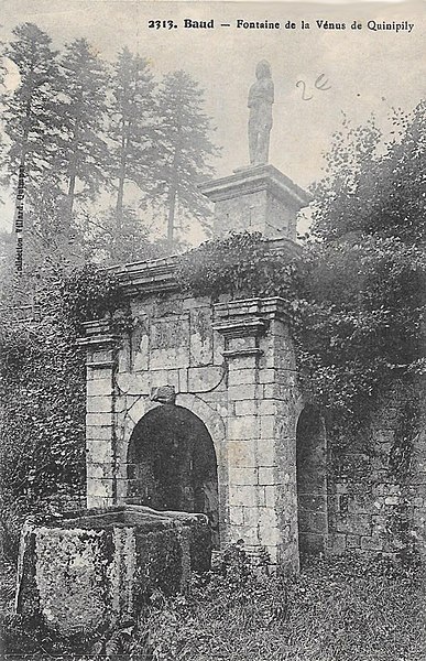 La statue dite Vénus de Quinipily est une sculpture monolithique en granit d'environ 2,15–2,20 m de haut, aujourd'hui installée dans le parc jouxtant les ruines du château de Quinipily, au sud‑est de Baud (Morbihan). Jusqu'au XVIIe siècle elle se trouvait sur la butte de Castennec, sur la commune de Bieuzy‑les‑Eaux, où elle était longuement vénérée sous les noms de Notre‑Dame de la Couarde, ar croah houarn ou Groac'h er 'hoard. La figure représente une femme nue, coiffée d'un bandeau et portant une longue écharpe qui lui couvre le pubis ; ses bras sont croisés sous la poitrine, rappelant aussi bien des attributs de Vénus que d'Isis. La statue reposait sur un piédestal posé dans une construction formant porche, encadrée par un ordre dorique, et surmontant une cuve en granite qui servait de fontaine ; l'eau y était alimentée par des conduits venant de sources voisines, dont la fontaine Saint‑Michel. Au cours du XVIIe siècle les missionnaires et l'évêché firent retirer et jeter à plusieurs reprises la statuette dans le Blavet afin de mettre fin aux pratiques populaires qu'elle suscitait, mais les habitants la rétablirent à plusieurs reprises et elle fut finalement transportée à Quinipily par Pierre de Lannion à la fin du XVIIe siècle. La statue originale, très mutilée, se brisa lorsqu'on tenta de la retailler ; il semble donc que la figure visible aujourd'hui ait été refaite ou retouchée au même moment et placée sur un piédestal neuf. Quatre inscriptions latines en relief ornent le socle ; elles la présentent comme dédiée à Vénus victorieuse, associent la dédicace à Jules César et mentionnent l'intervention de Pierre comte de Lannion pour la faire placer en ce lieu en 1696. L'authenticité antique et l'interprétation de l'œuvre ont fait l'objet de débats : certains archéologues ont évoqué une origine romaine, étrusque ou égyptienne liée à la présence militaire dans la région et au caractère iconographique isiaque de l'écharpe, tandis que d'autres spécialistes, dont Prosper Mérimée, ont considéré les inscriptions comme apocryphes et la statue comme une création postérieure, probablement du XVIIe siècle. La Vénus de Quinipily a été visitée et décrite dès le XVIIIe siècle par des érudits locaux et reste une curiosité régionale ; elle est classée au titre des monuments historiques depuis le 18 novembre 1943.