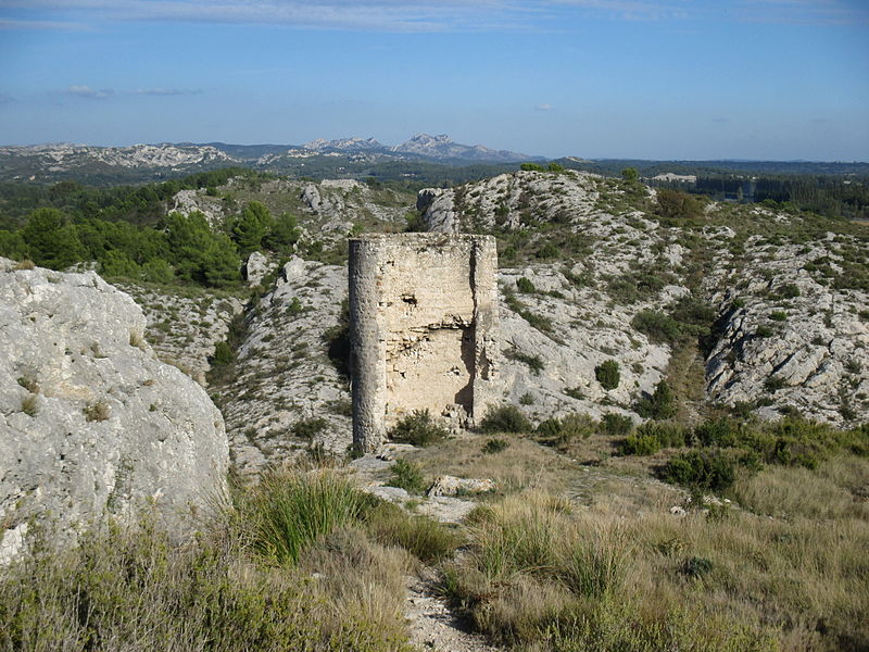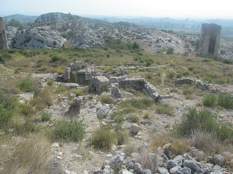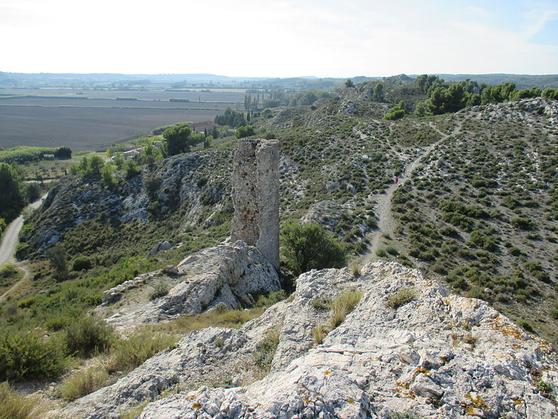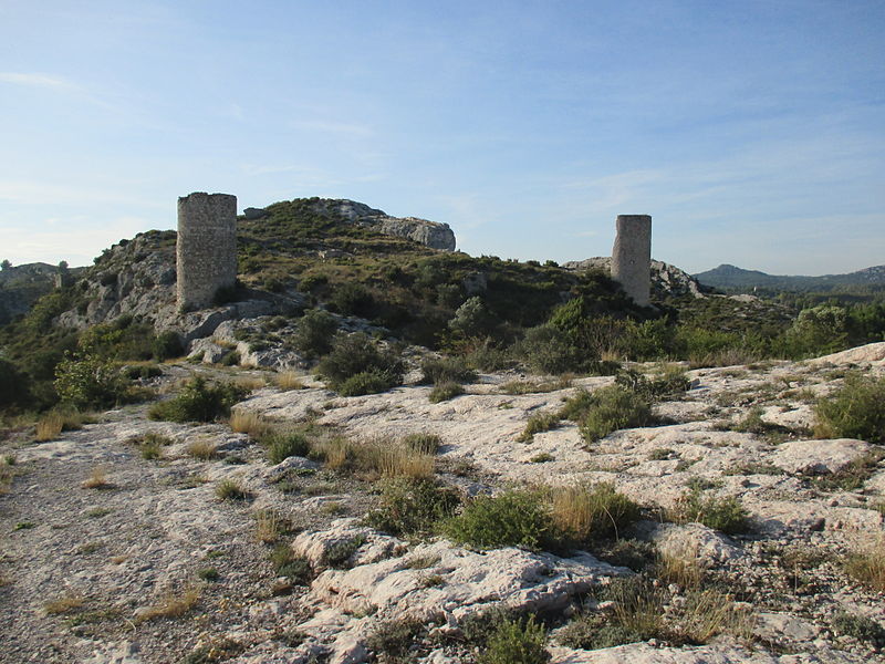 Au Moyen Âge, le site, d'abord propriété de l'abbaye de Montmajour, passe aux mains des seigneurs des Baux entre les XIe et XIIe siècles ; sa position facilite les communications avec le château des Baux et le contrôle de la voie traversant le marais des Baux vers la plaine de la Crau. Les sources écrites mentionnent le château au XIIe siècle. Aux XIIIe et XIVe siècles, un rempart entoure la colline : les angles sont d'abord occupés par des tours carrées, ensuite renforcées par des tours curvilignes et des lices en avant. Les fouilles réalisées entre 1986 et 1990 ont porté sur un petit quartier d'habitation qui se développe au XIVe siècle et subit de nombreuses transformations ; des silos, des caves et des citernes y ont été identifiés. L'abandon du site s'opère progressivement dans les dernières années du XIVe siècle.