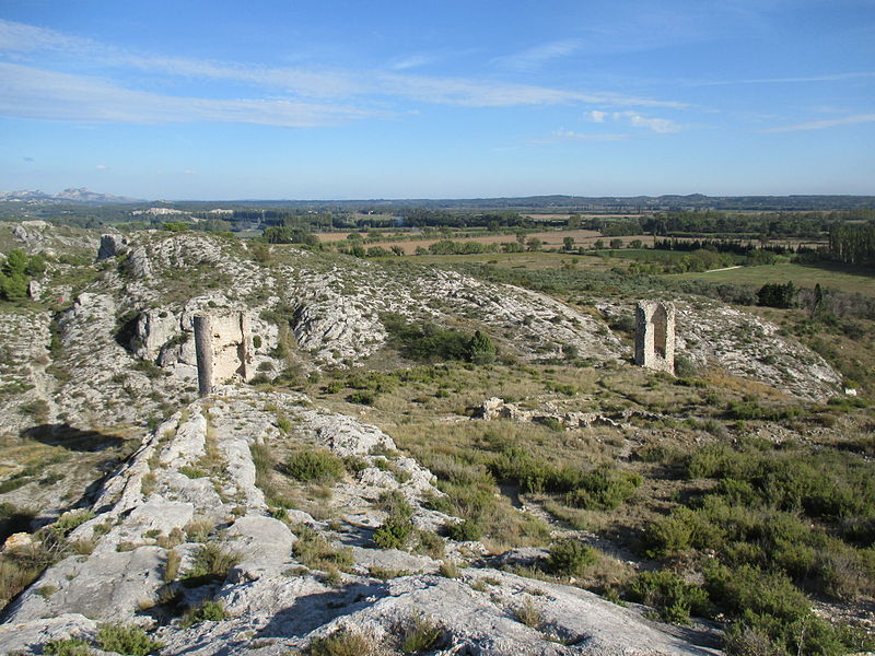 Dès l'Antiquité, le site dominait une vaste étendue marécageuse, les marais des Baux, dont il constituait la frontière nord, et il se trouve au-dessus d'un point de franchissement du marais, le pont Saint-Jean, à 41 mètres d'altitude. Propriété des seigneurs des Baux au Moyen Âge, il présente des traces d'occupation dès le IIe siècle av. J.-C., voire de tessons probablement plus anciens de deux à trois siècles. L'oppidum est fortifié à partir du IIe siècle av. J.-C. par un mur en brique crue appuyé sur un socle de pierres sèches large d'environ 1,50 mètre ; un parement en grand appareil, postérieur au premier rempart mais de la même période ou au plus tard augustéenne, a également été reconnu. Des cases à brique crue reposent sur un solin de pierres contre le rempart. Les blocs du rempart ont été largement prélevés au Moyen Âge pour la construction d'ouvrages divers, et l'on suppose l'existence de deux portes au castrum, au nord et au sud, sans preuve formelle à ce jour. Les matériaux proviennent probablement des Alpilles, un calcaire burdigalien typique des Baux ou du Montpaon, et le site présente un premier rempart en briques crues tandis qu'un second parement, de qualité moindre, a été réalisé en adobes. Des traces d'incendie laissent penser que le village a été détruit entre la fin du IIe et le début du Ier siècle av. J.-C., après quoi il semble avoir été à nouveau occupé au début de l'époque romaine. Une chaussée antique a été repérée par vues aériennes ; sa datation reste à préciser, mais elle est sans doute d'époque romaine.