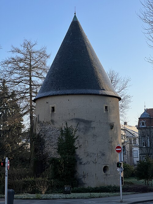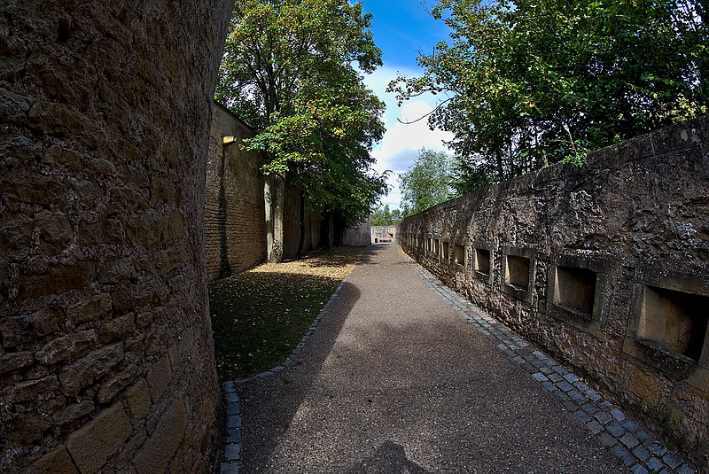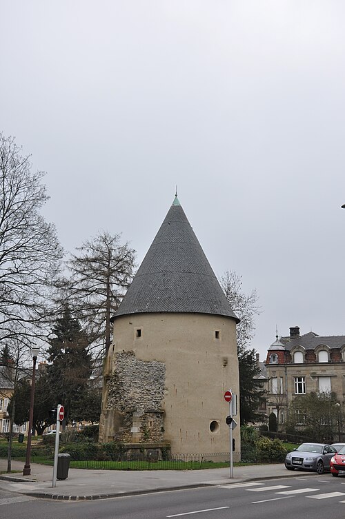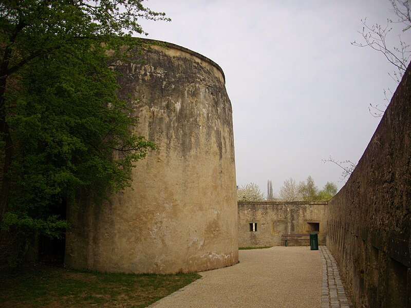 Les anciens remparts (restes) situés au nord et au nord-est de l'Arsenal : inscription par arrêté du 12 octobre 1929 - La tour Camoufle : inscription par arrêté du 31 octobre 1929 - La tour des Esprits ; la partie des remparts comprise entre les deux ouvrages précédents ; les constructions dites basses grilles de la Seille : inscription par arrêté du 14 avril 1932 - La Porte des Allemands (cad. 20 5, 6, 7, 9) : classement par arrêté du 3 décembre 1966 - L'ancienne porte de prison transférée de la rue Lasalle sur la face intérieure du rempart médiéval en 1980 (cad. 28 200/118) : inscription par arrêté du 27 octobre 1971