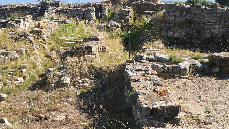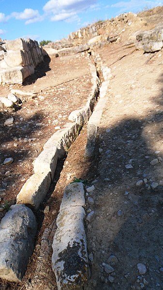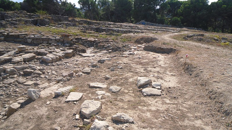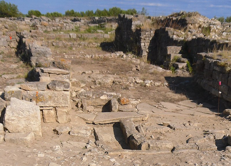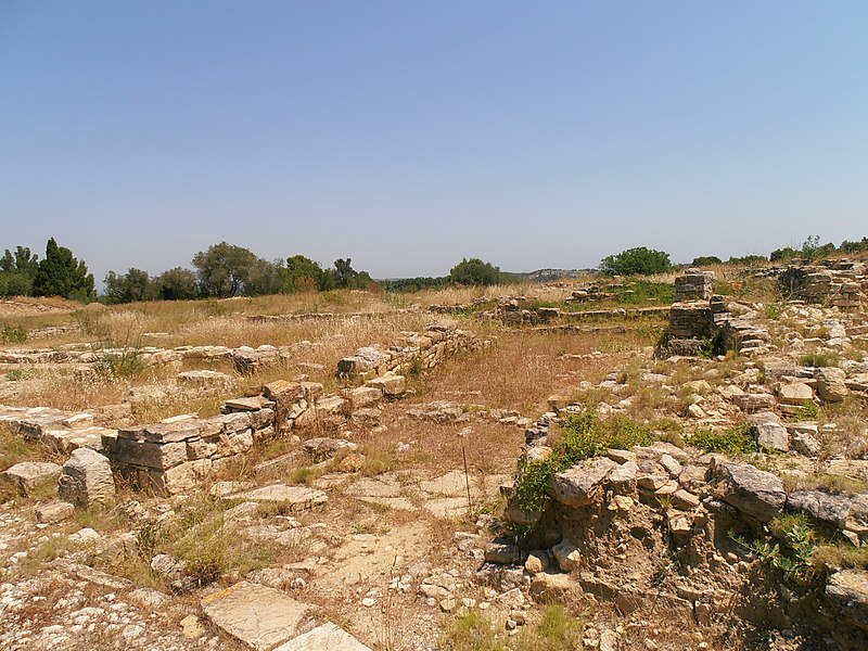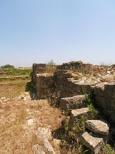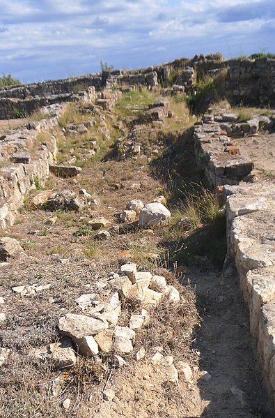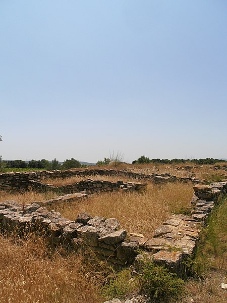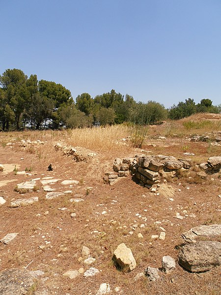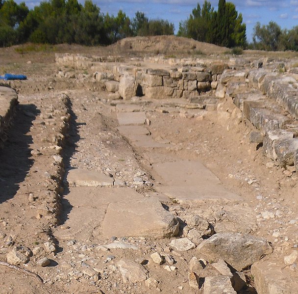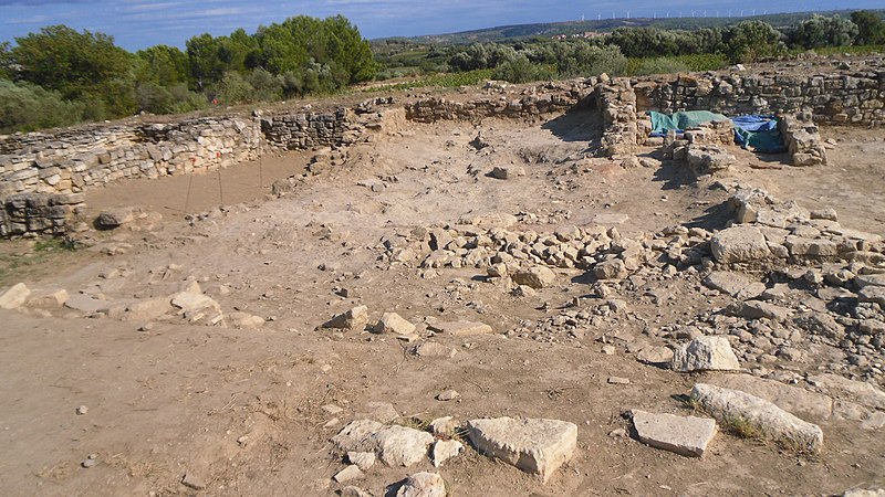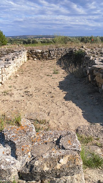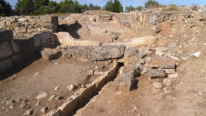 La phase I (milieu VIe–milieu Ve s. av. J.-C.) est surtout caractérisée par le creusement d’un fossé protégeant le secteur sud‑est et par des habitations en adobe sur solin de pierres, associées à des importations étrusques, ioniennes et puniques. La phase II marque la reconstruction de l’habitat selon un plan préétabli, la généralisation de l’adobe sur solin, le remaniement et le renforcement des remparts, et l’organisation du site en îlots desservis par une grande rue nord‑sud et plusieurs artères secondaires. La phase III, la mieux documentée, confirme la continuité urbaine : les maisons sont rehaussées, les défenses renforcées par des murs en terrasses et une tour curviligne protège un accès charretier ; l’écriture ibère devient fréquente et les relations avec la péninsule ibérique s’intensifient.